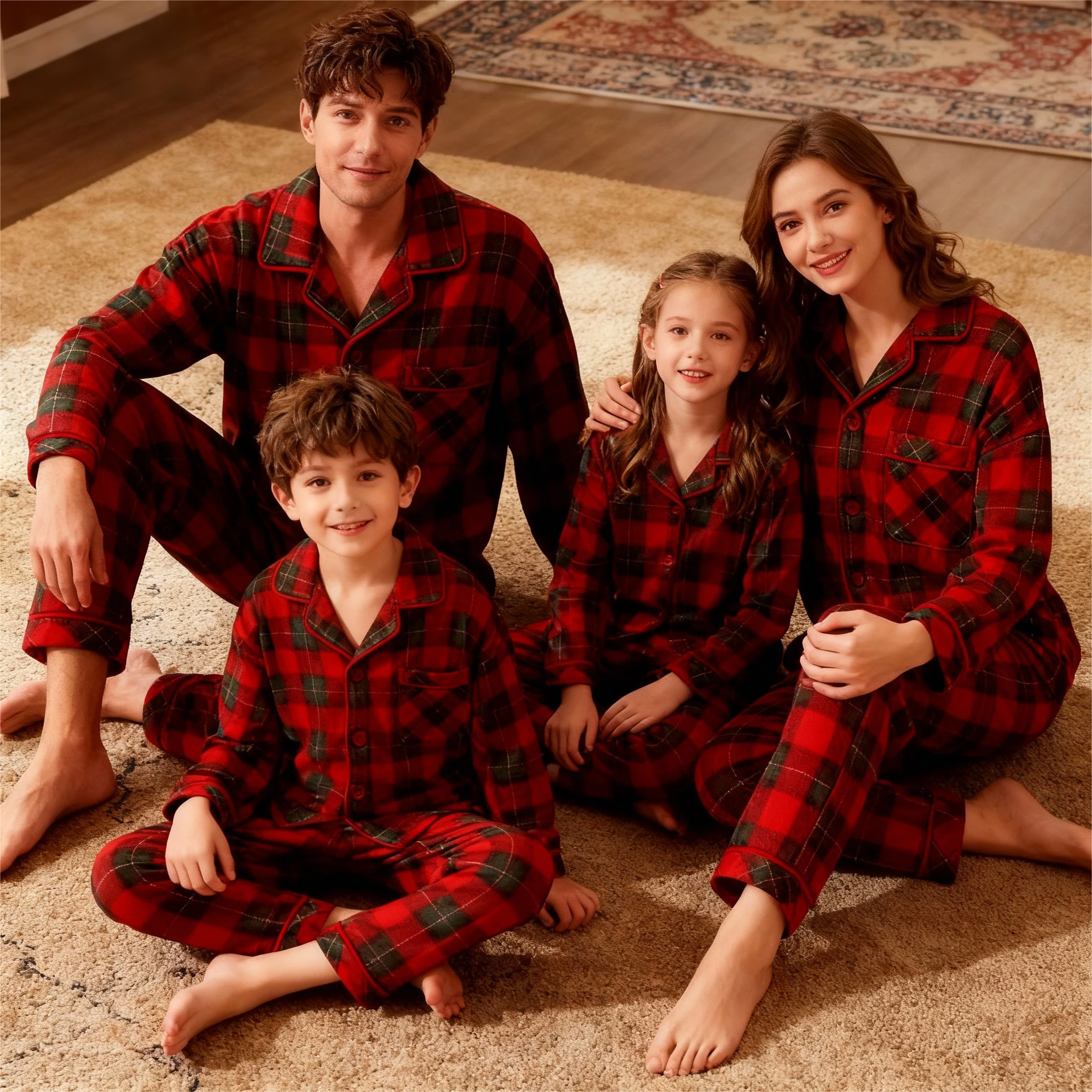 Dress the whole family in matching festive cheer! Our Classic Plaid Christmas Pajamas feature soft. breathable fabric for ultimate comfort.