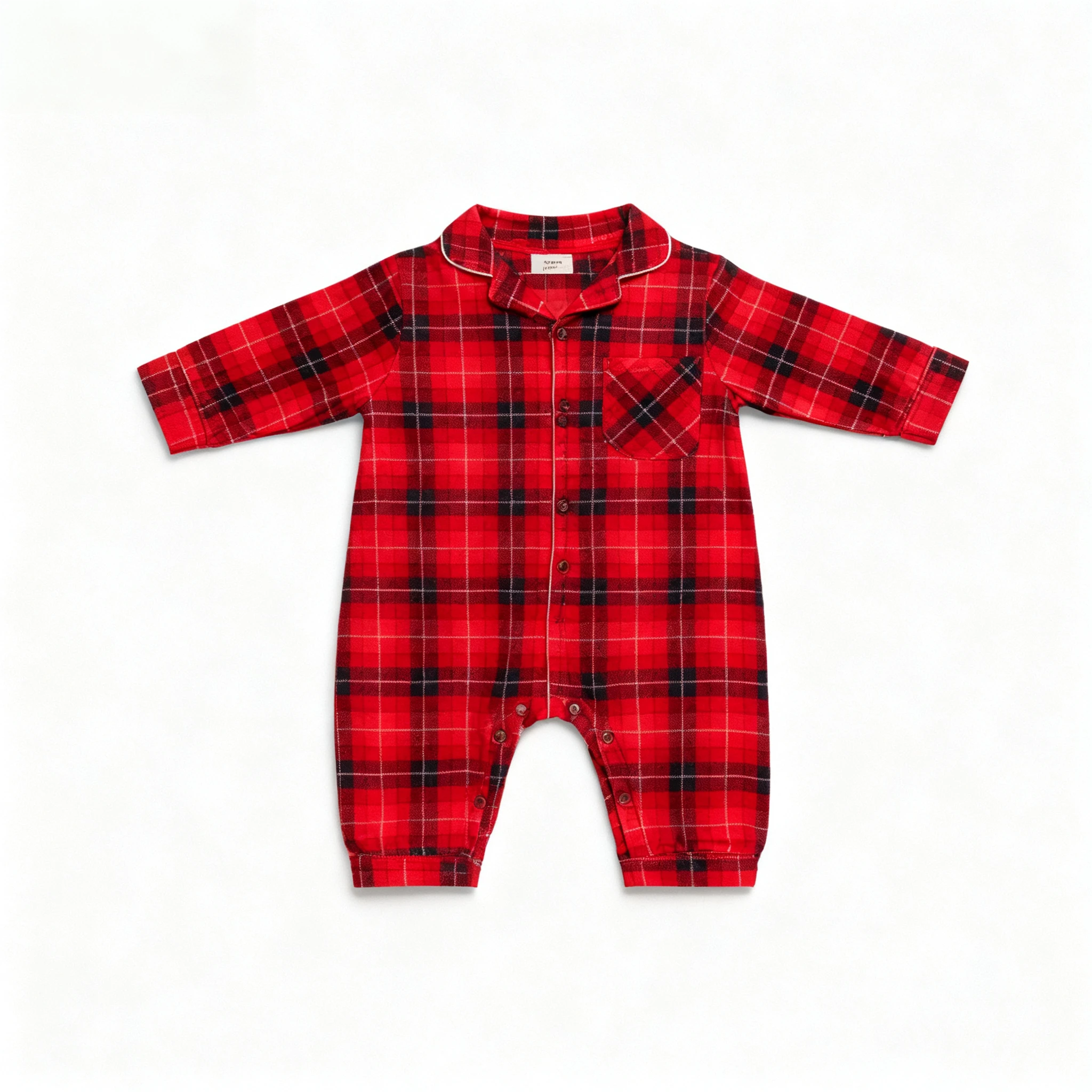 Christmas Family Matching Red Plaid Button Up Long-sleeve Pajamas Sets With Dog
