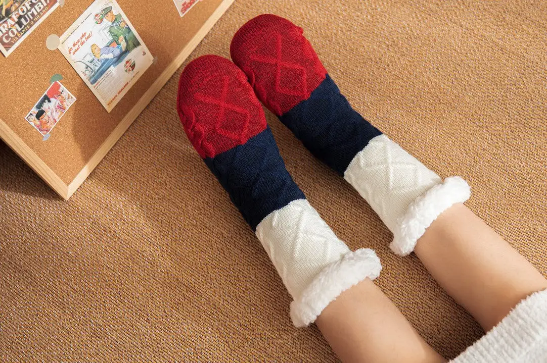 Christmas floor socks for adults carpet socks for home plus fleece sleeping lamb socks