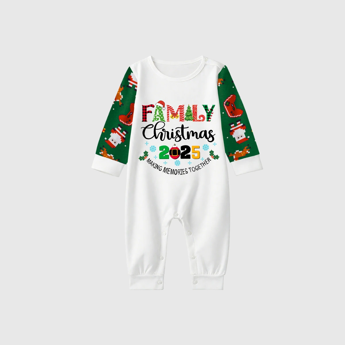 Christmas Gnomes Hanging with my Gnomies Family Pajamas Set - White Top, Green Cartoon Pants, Green Sleeves, Gnome Print