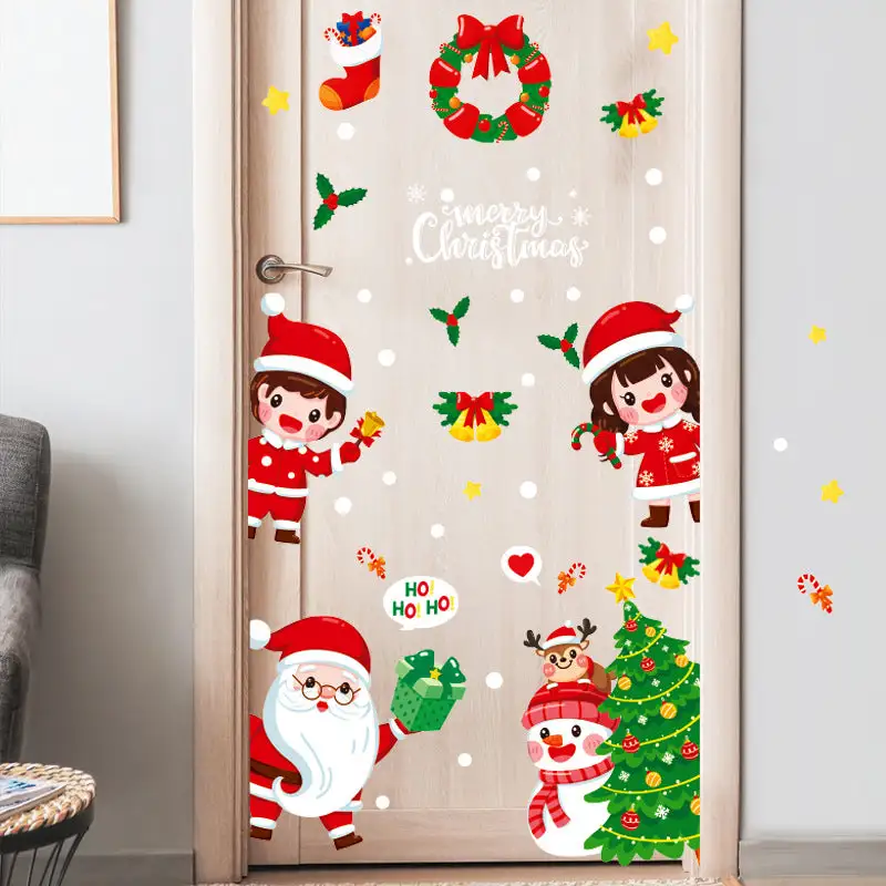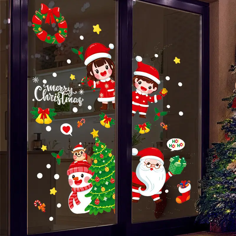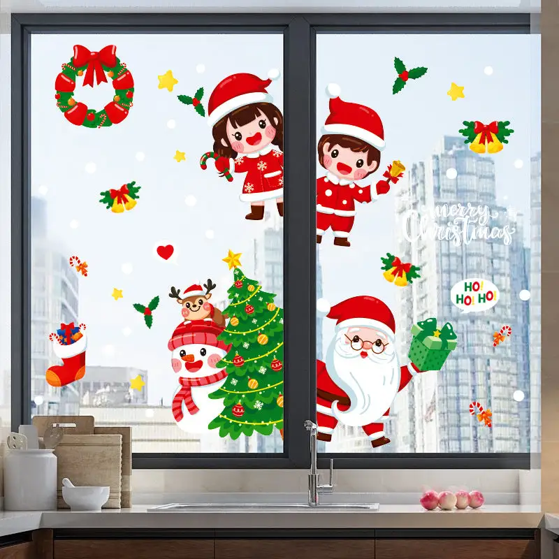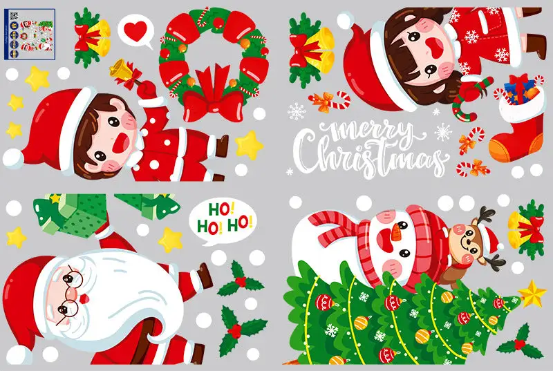 Christmas Ho Ho Ho Santa Snowman Boy Girl Tree Star Bell Wall Sticker Bedroom Living Room Window Decoration