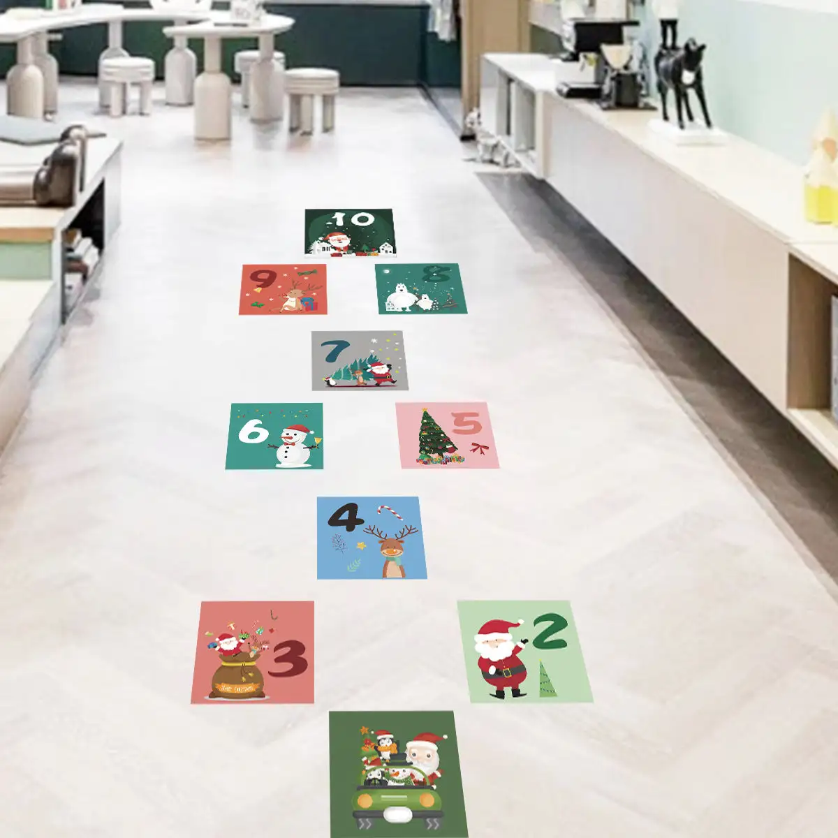 Christmas Hopscotch Lattice Santa Polar Bear Elk Snowman Tree Wall Sticker Children's Bedroom Floor Decoration