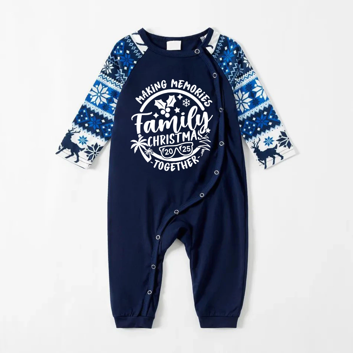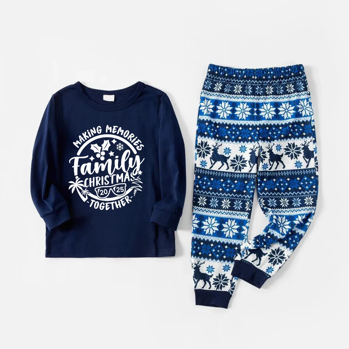 Christmas Make Memories Together 2025 Print Blue Family Matching Pajamas With Dog bandana