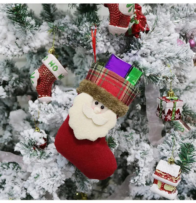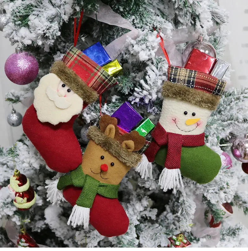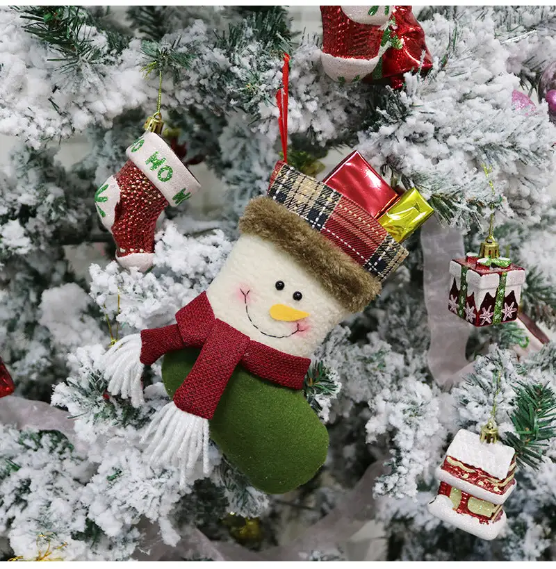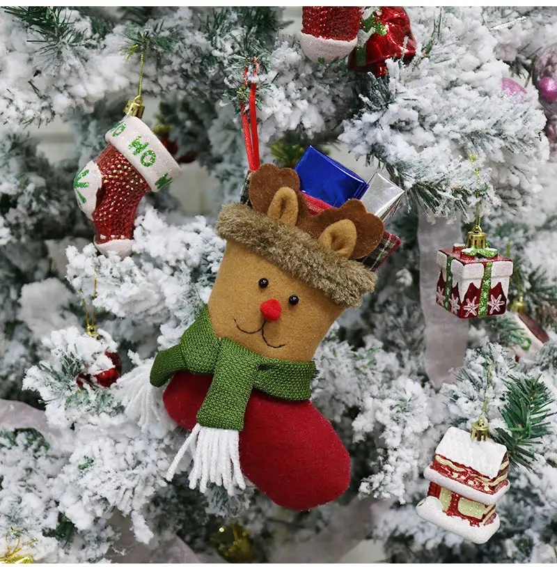 Christmas Pendant Red/Green Santa Snowman Reindeer with Scarf Christmas Gift Socks