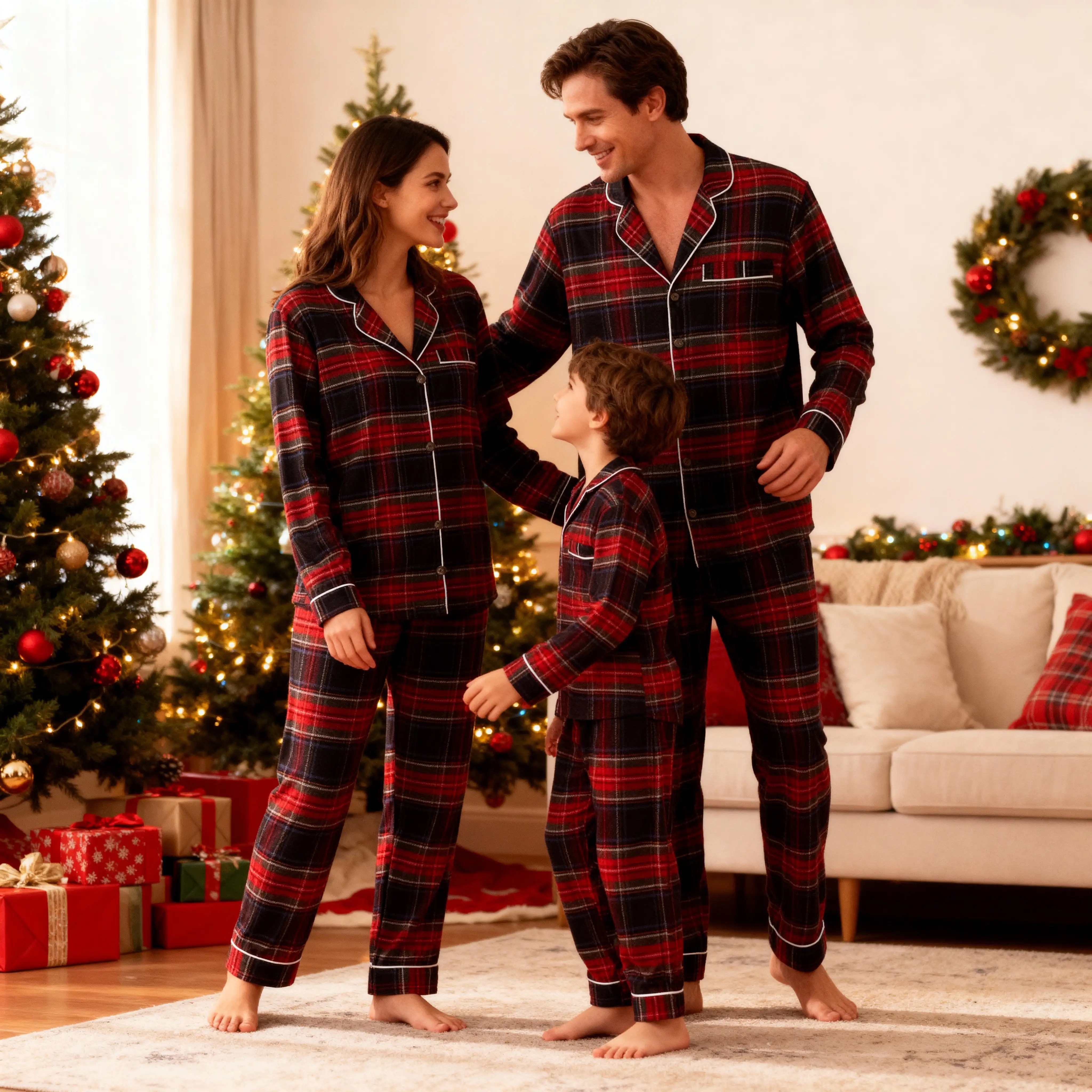 Dress the whole family in matching festive cheer! Our Classic Plaid Christmas Pajamas feature soft. breathable fabric for ultimate comfort.