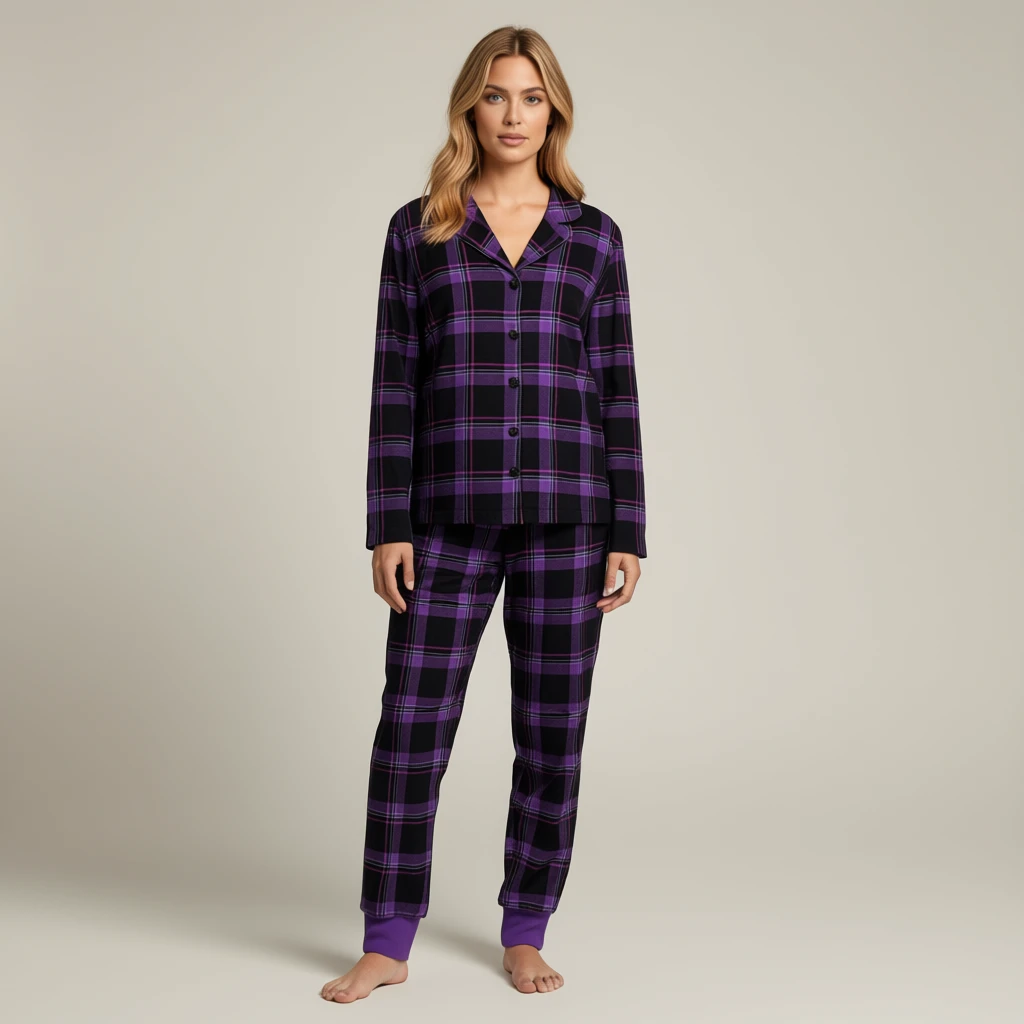 Christmas Purple Plaid Button-Front Pajamas Family Pajamas Sets