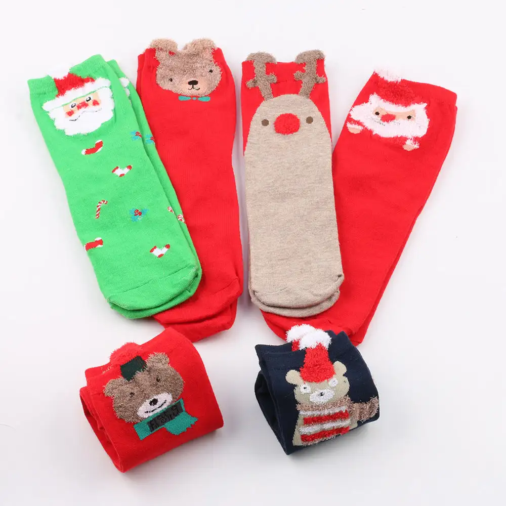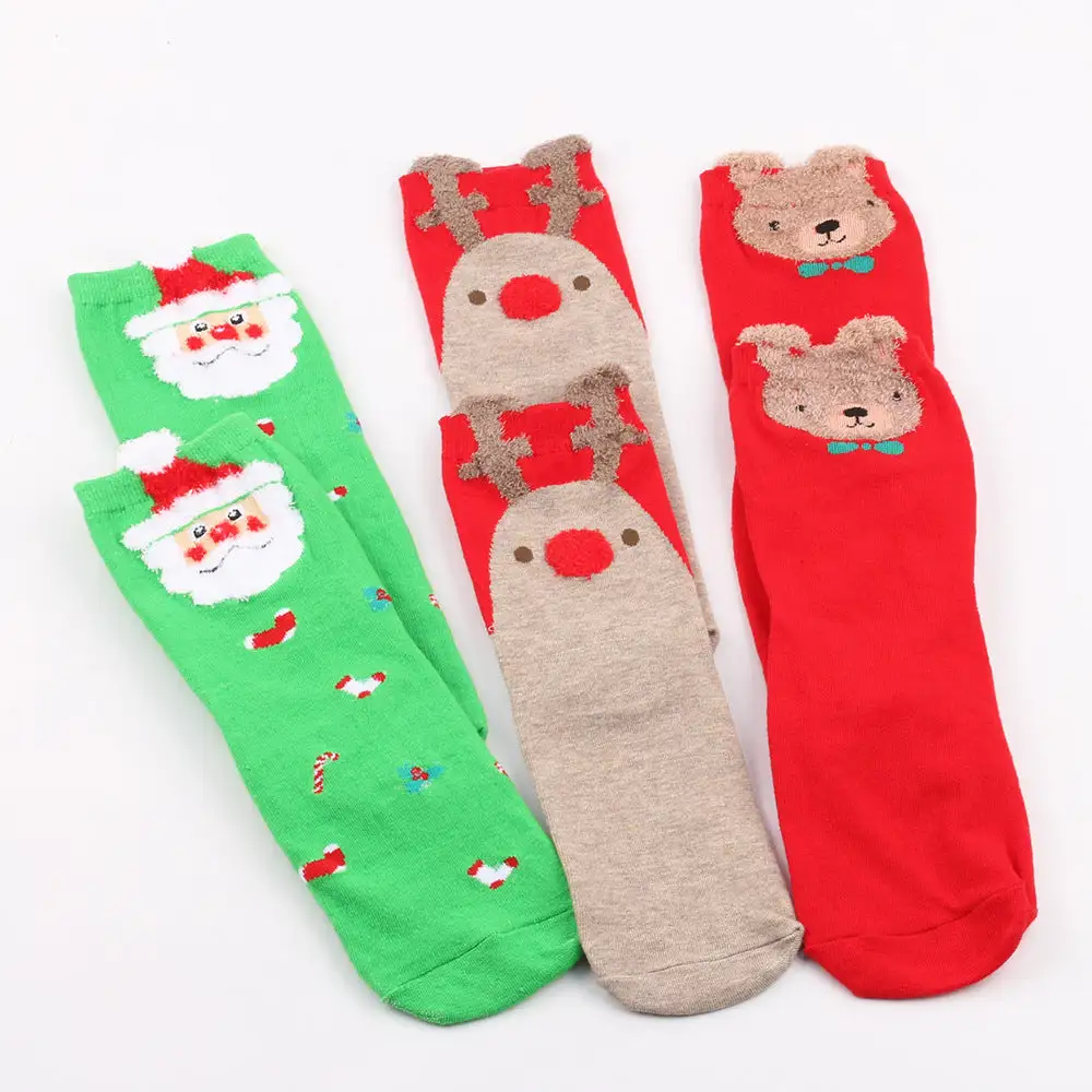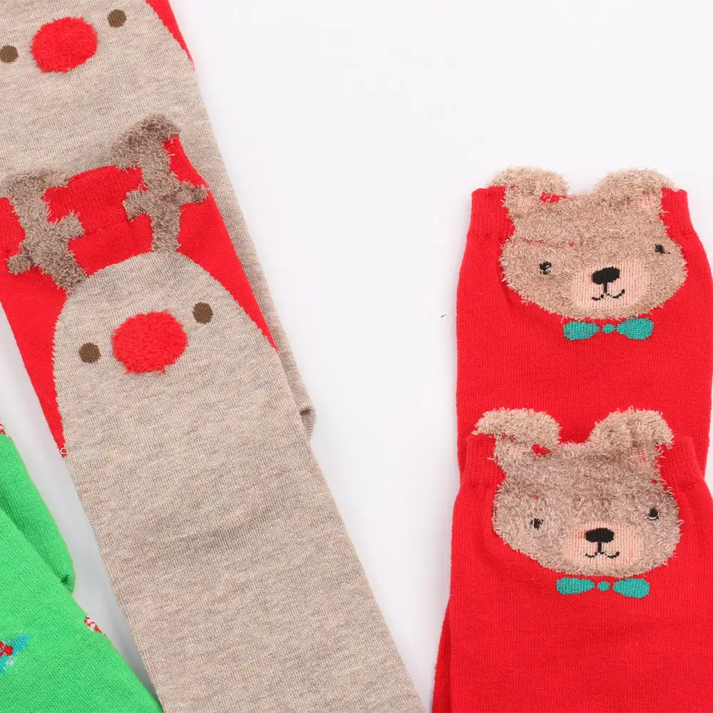 Christmas Santa Claus Elk Bear Red Green Blue Stocking 3/6Pairs