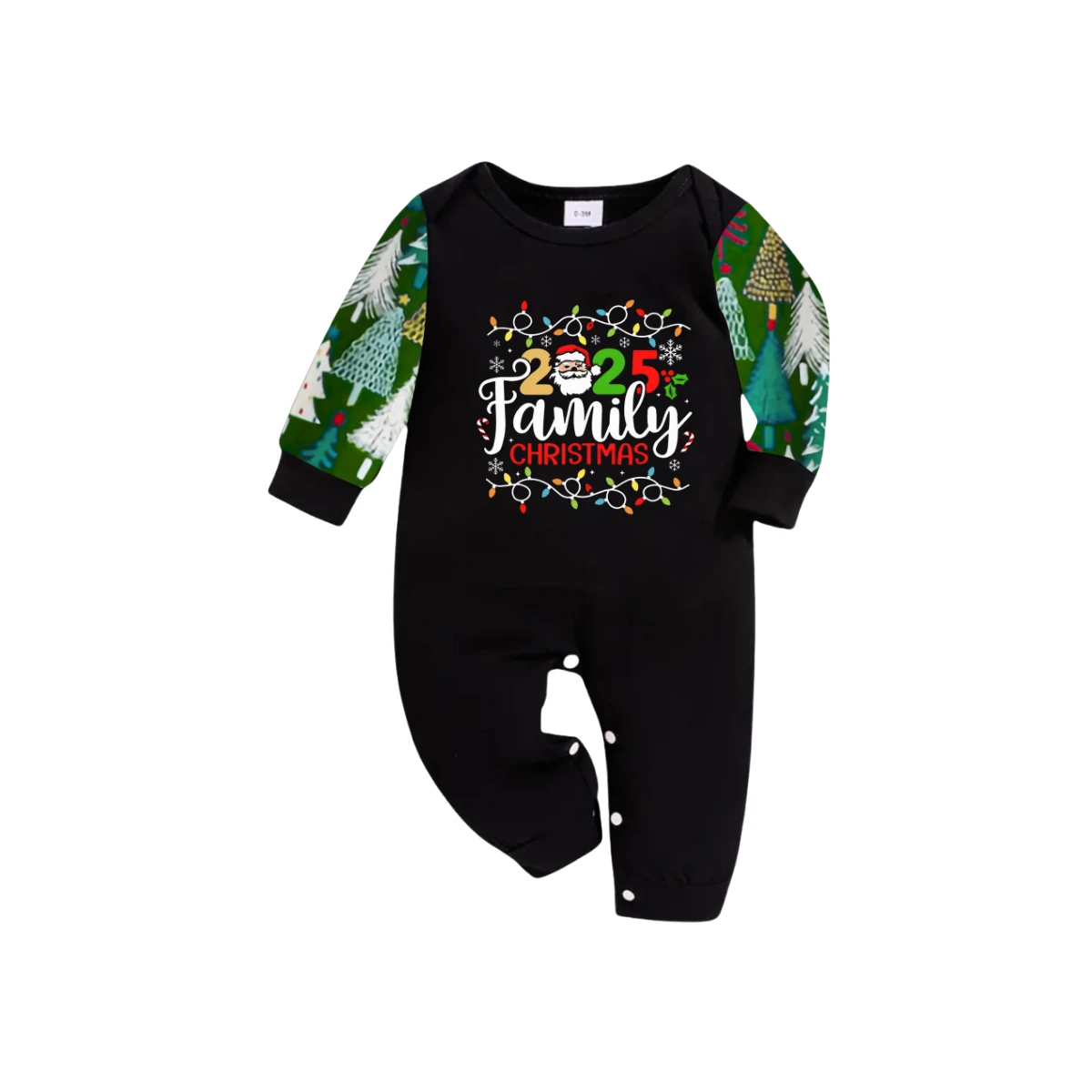 Christmas Tree Christmas Pajamas Set With Christmas Light and "2025 Family Christmas" Text Print