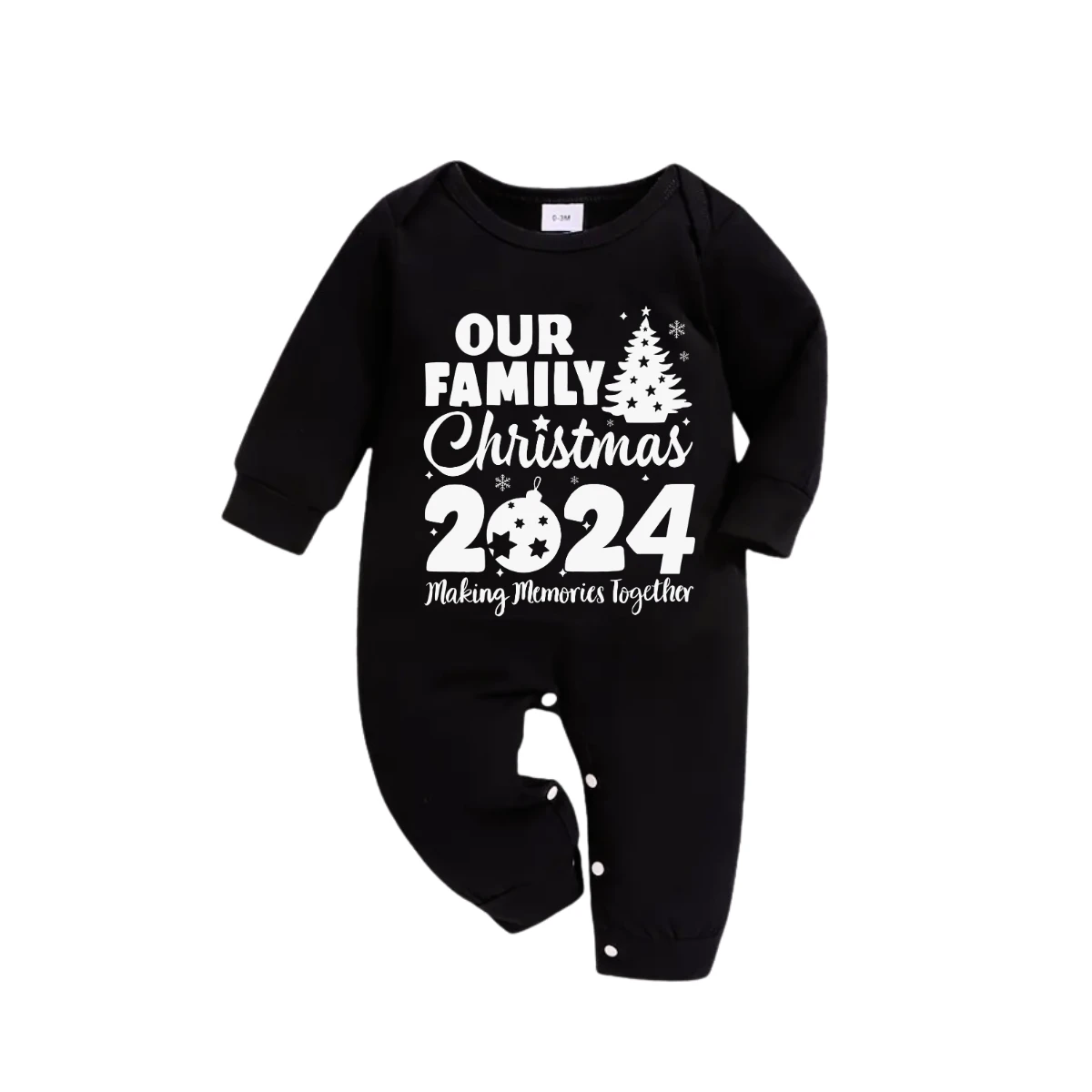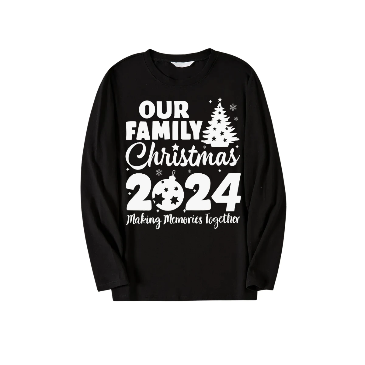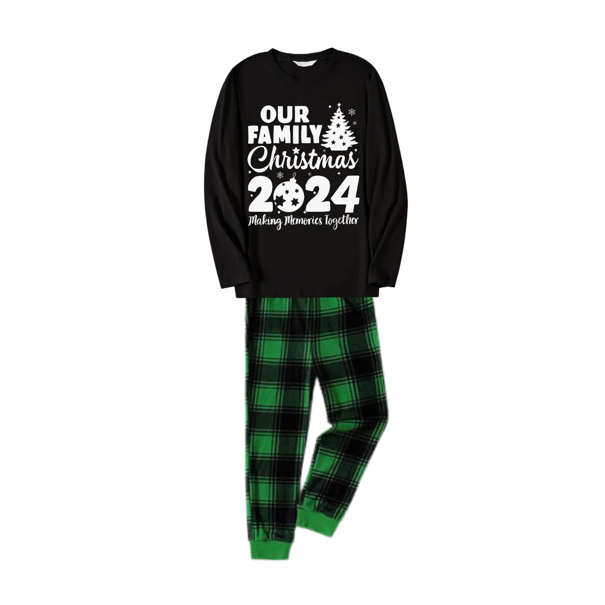 Get ready to cozy up in style with our "Christmas Tree & "Making Memories Together" 2024 Patterned Black Long Sleeve Top with Green and Black Plaid Family Matching Pajamas". perfect for the festive season. This adorable ensemble is designed for the whole family. including your beloved furry friend.