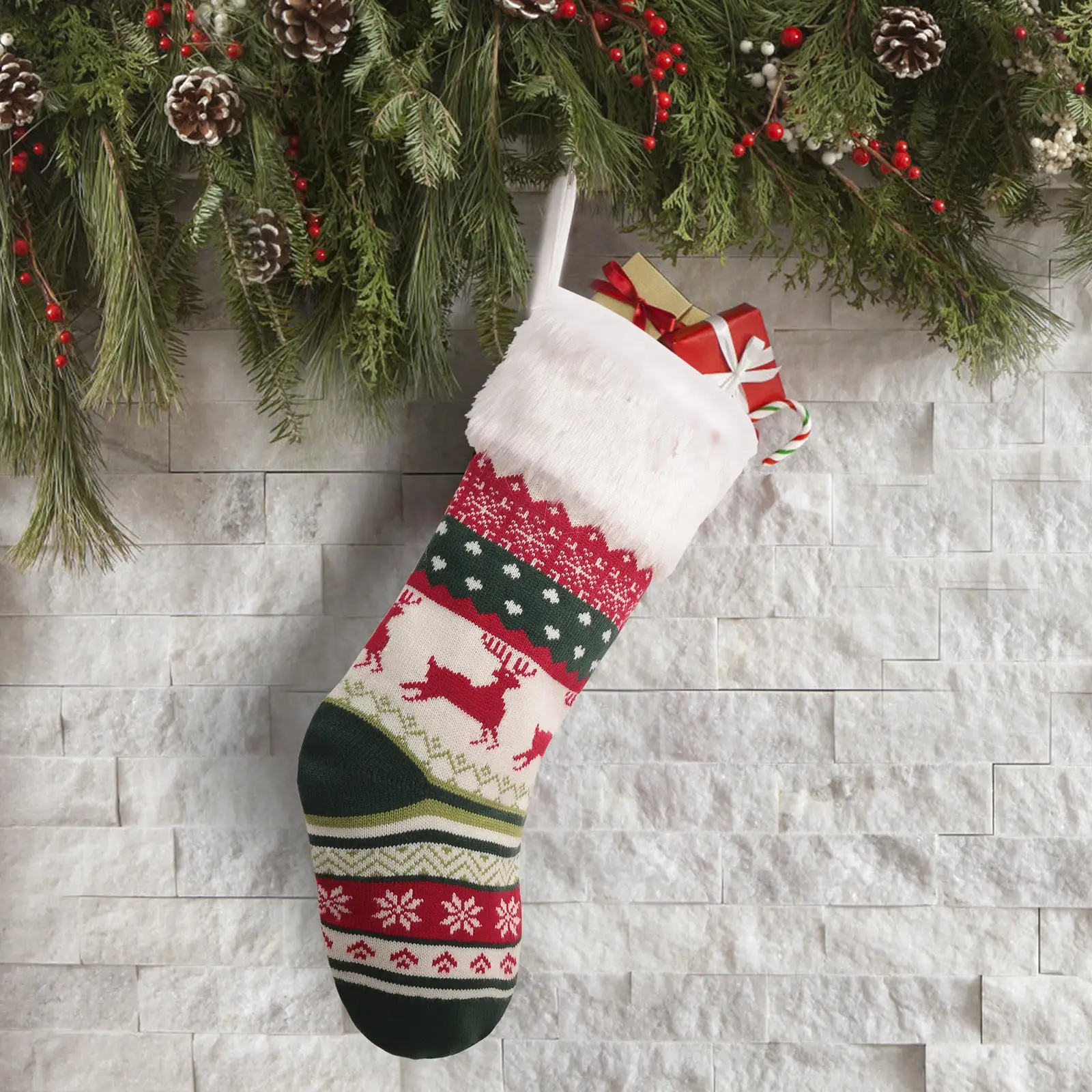 Christmas Tree Ornaments Allover Printed Knitted Christmas Stocking Candy Bag Wall Decoration