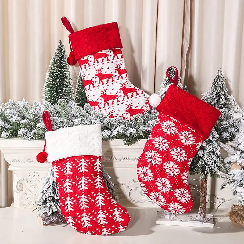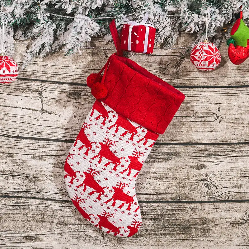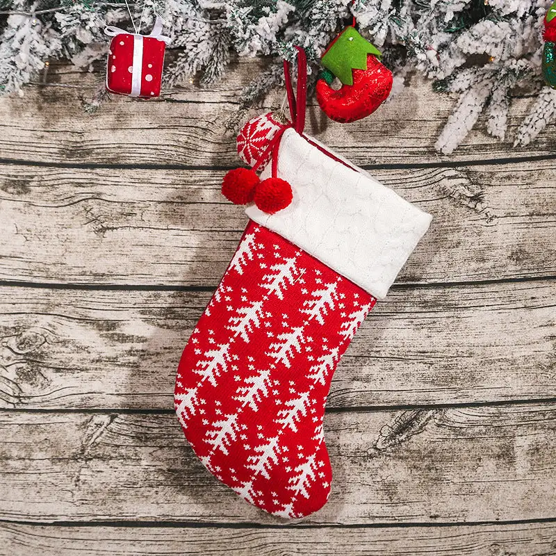 Christmas Tree Ornaments Knitted Woolen Christmas Socks Candy Gift Bag