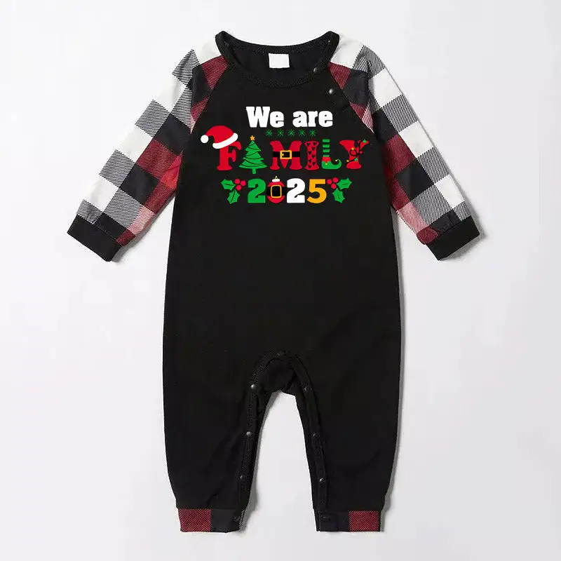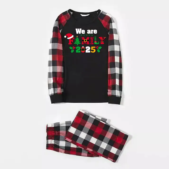 Christmas We are Family 2025 Letter Print Red & Black & Grey & White Plaid Family Matching Pajamas With Dog