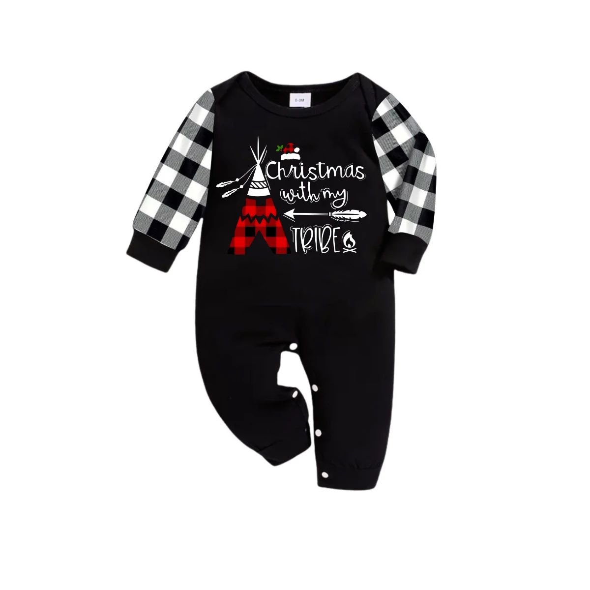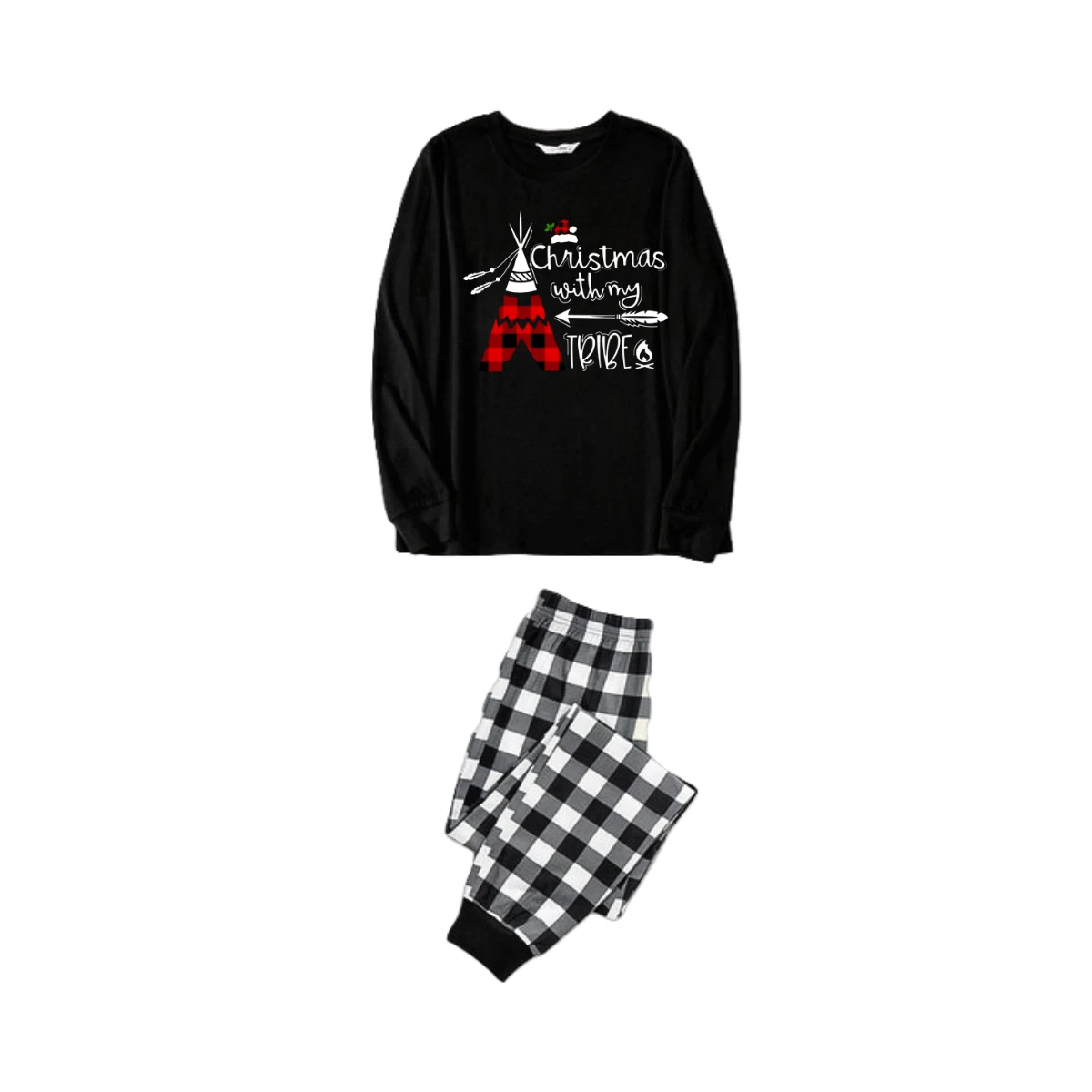 "Christmas With My Tribe" Pattern Ⅱ - Black and White Plaid Family Matching Pajamas