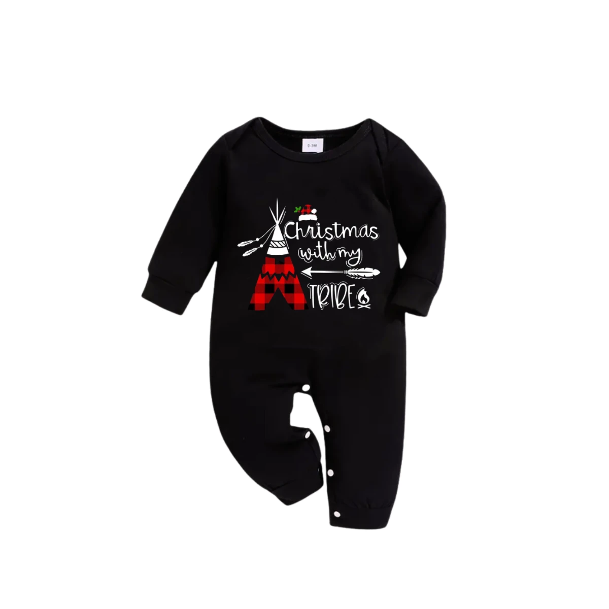 "Christmas With My Tribe" Pattern Ⅱ - Black Long Sleeve Top