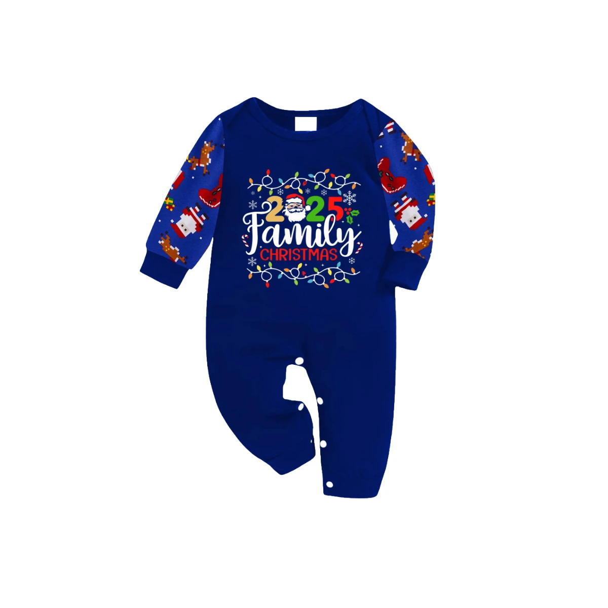 Cozy Blue Christmas Pajamas Set With Christmas Light and "2025 Family Christmas" Text Print