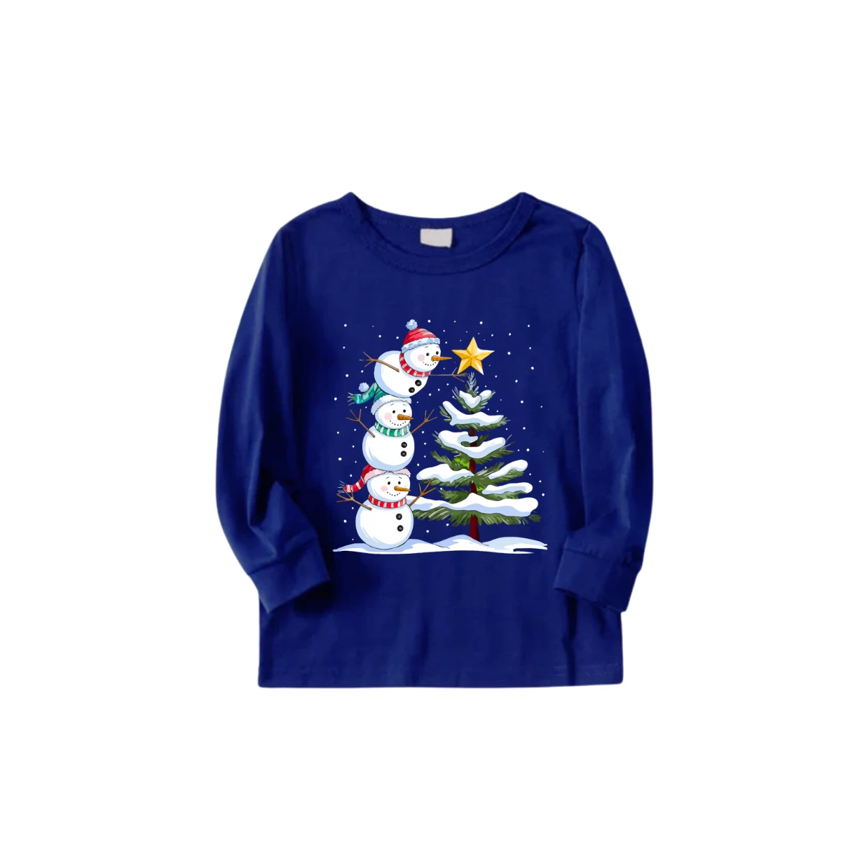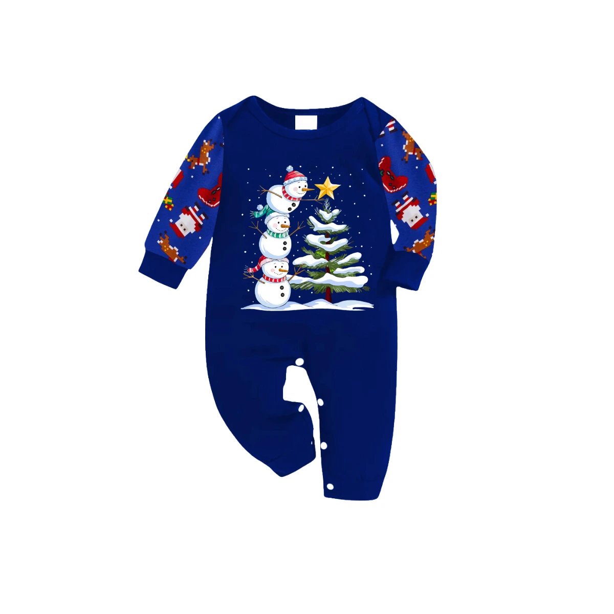 Cozy Blue Christmas Pajamas Set with Snowman & Christmas Tree Print
