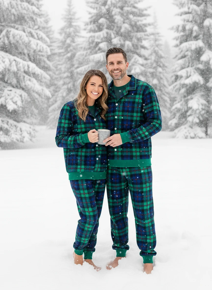 Cozy Green Plaid Button-Up Christmas PJs for Family