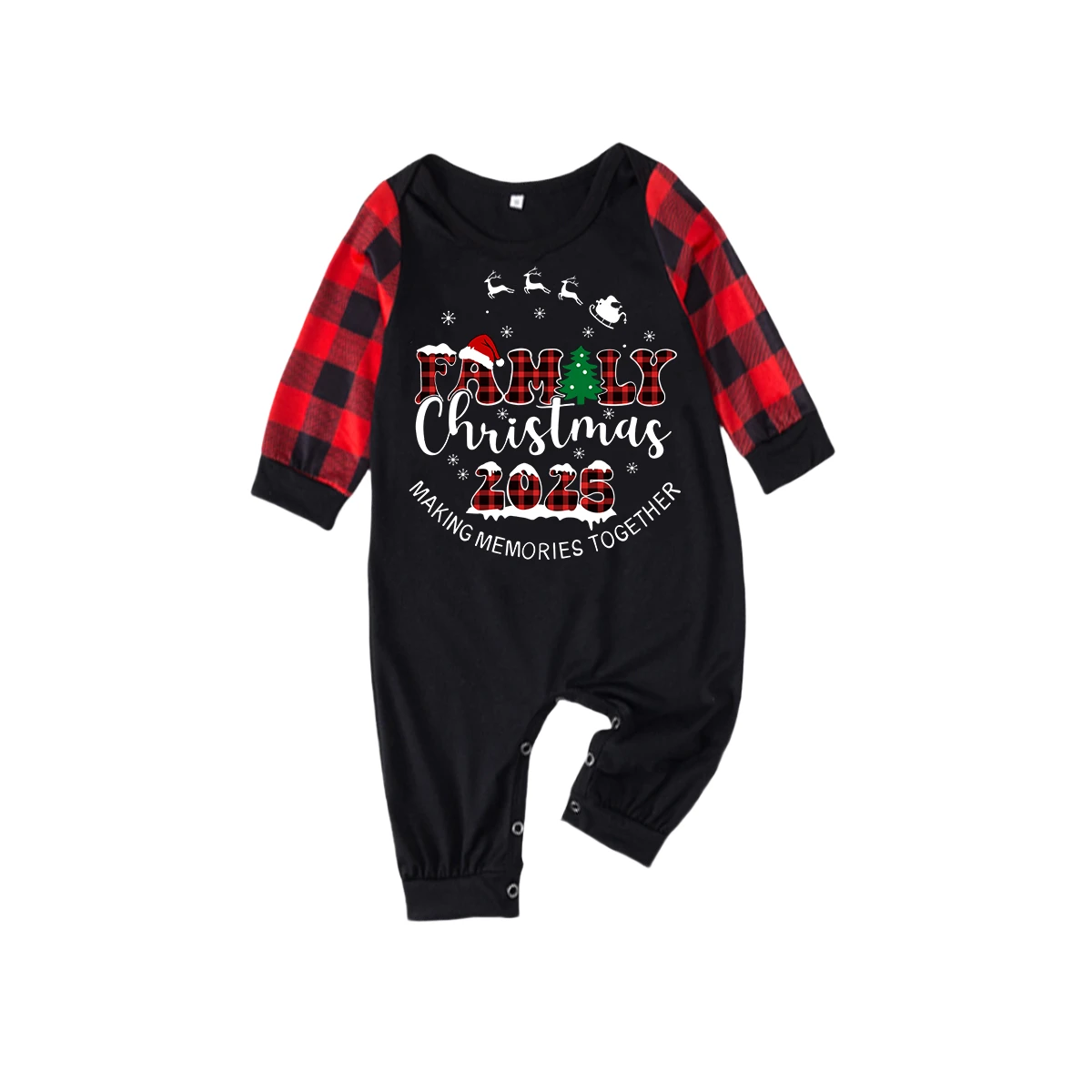 Cute Elk and "2025 Family Christmas" Text Print Black & Red Plaid Christmas Matching Pajamas