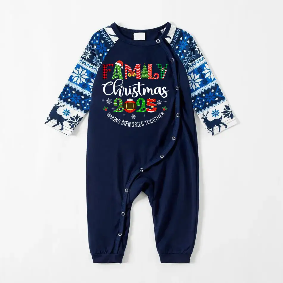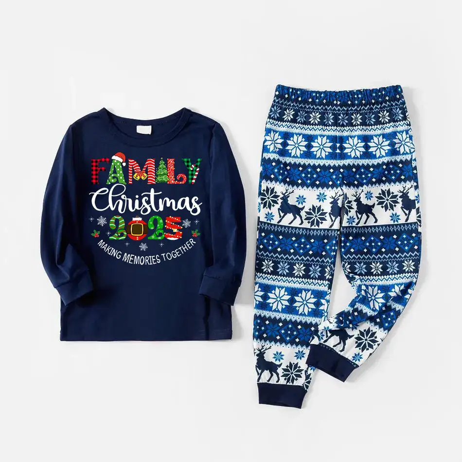Family 2025 Christmas Pattern Print Blue Family Matching Pajamas
