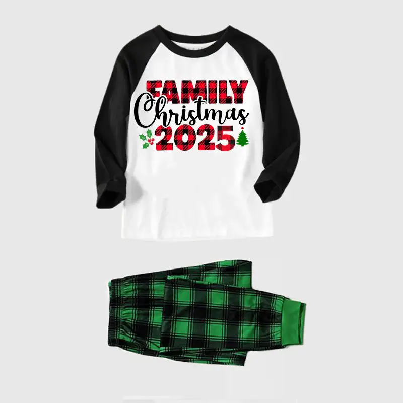 "Family Christmas 2025" Printed Green and Black Plaid Christmas Family Pajamas
