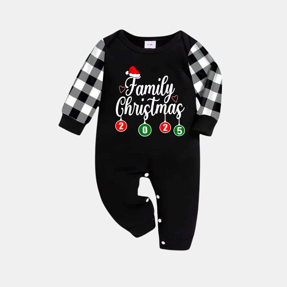 "Family Christmas" 2025 Black Long Sleeve Top with Black And White Plaid Pants Family Matching Pajamas