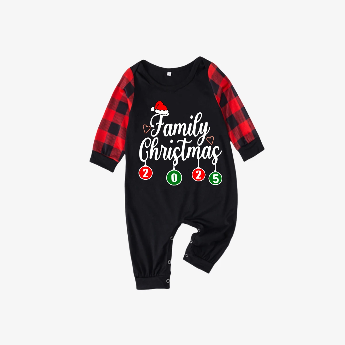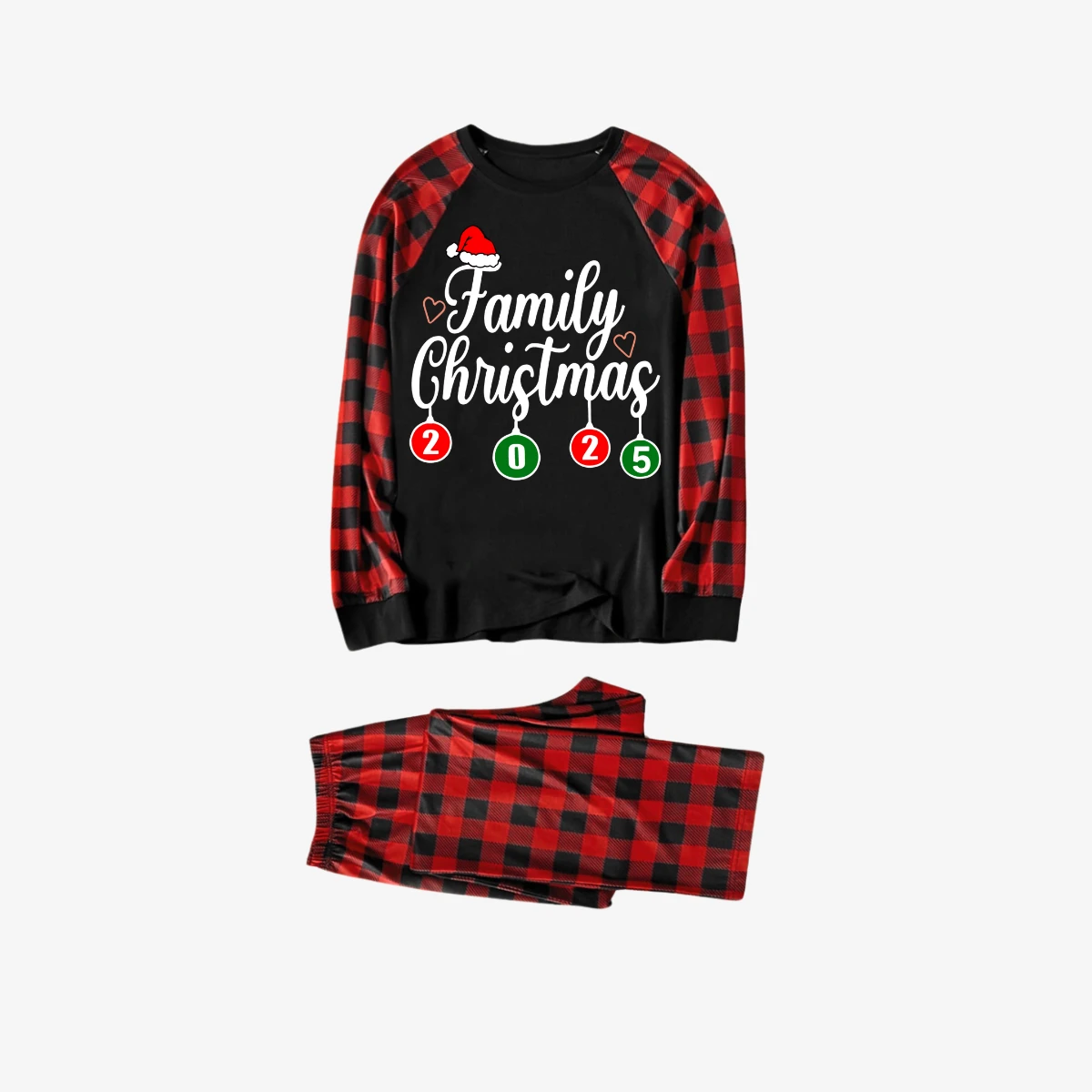 "Family Christmas" 2025 Letter Print Black & Red Plaid Family Matching Black Pajamas