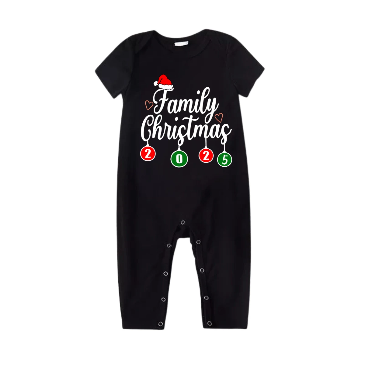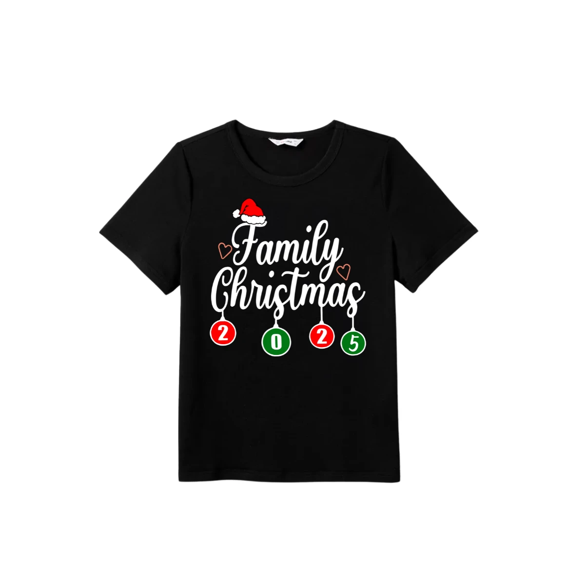 "Family Christmas" 2025 Letter Print Black Short Sleeve with Red & Black Plaid Pant Family Matching Pajamas