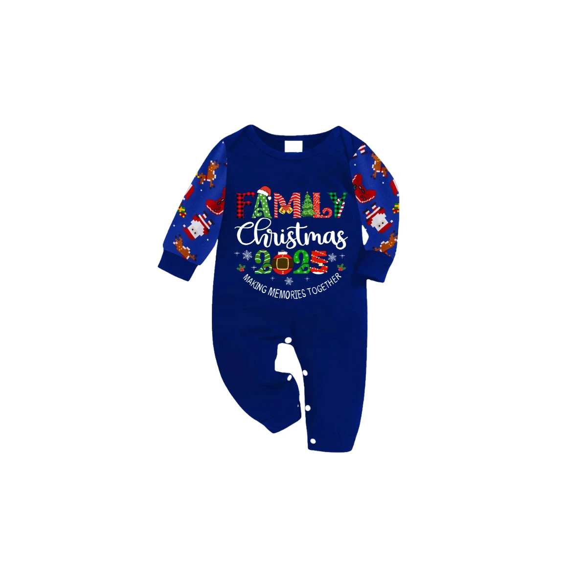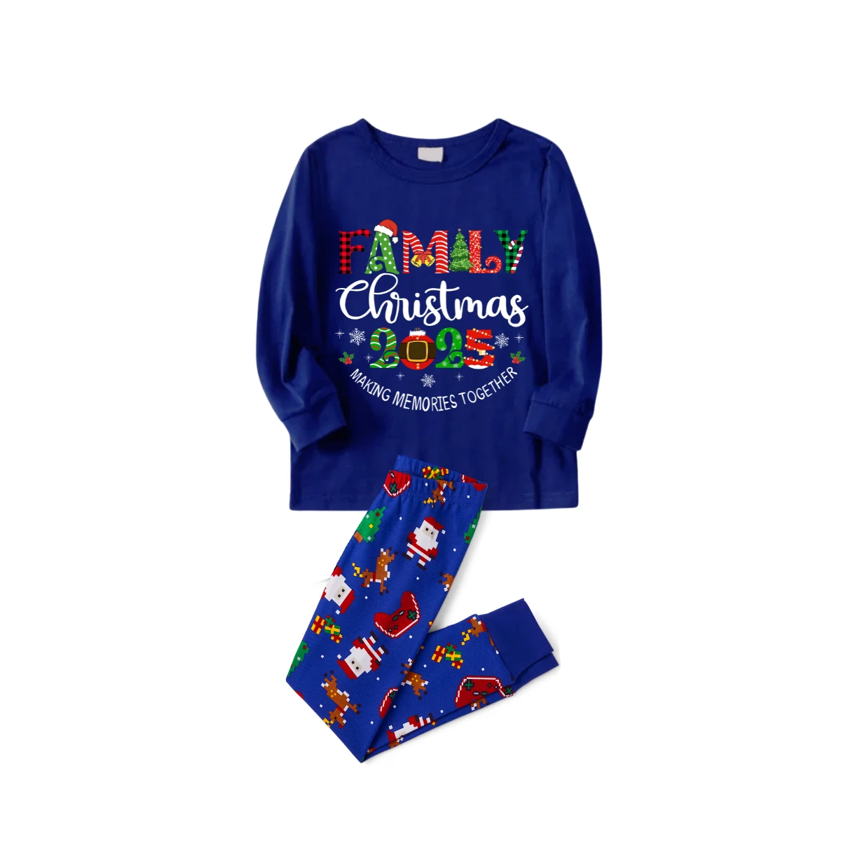 Family Christmas 2025 Making Memories Family Pajamas Set - Blue Top, Blue Pants, Blue Christmas Cartoon Sleeves