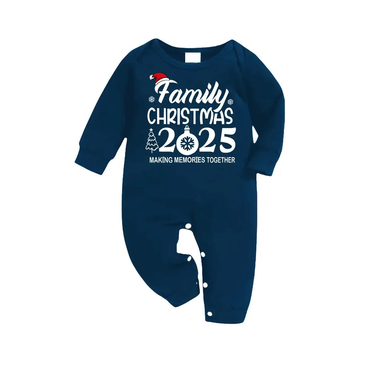 "Family Christmas 2025 " Text Print Blue Long Sleeve Top With Blue Plaid Family Matching Pajamas