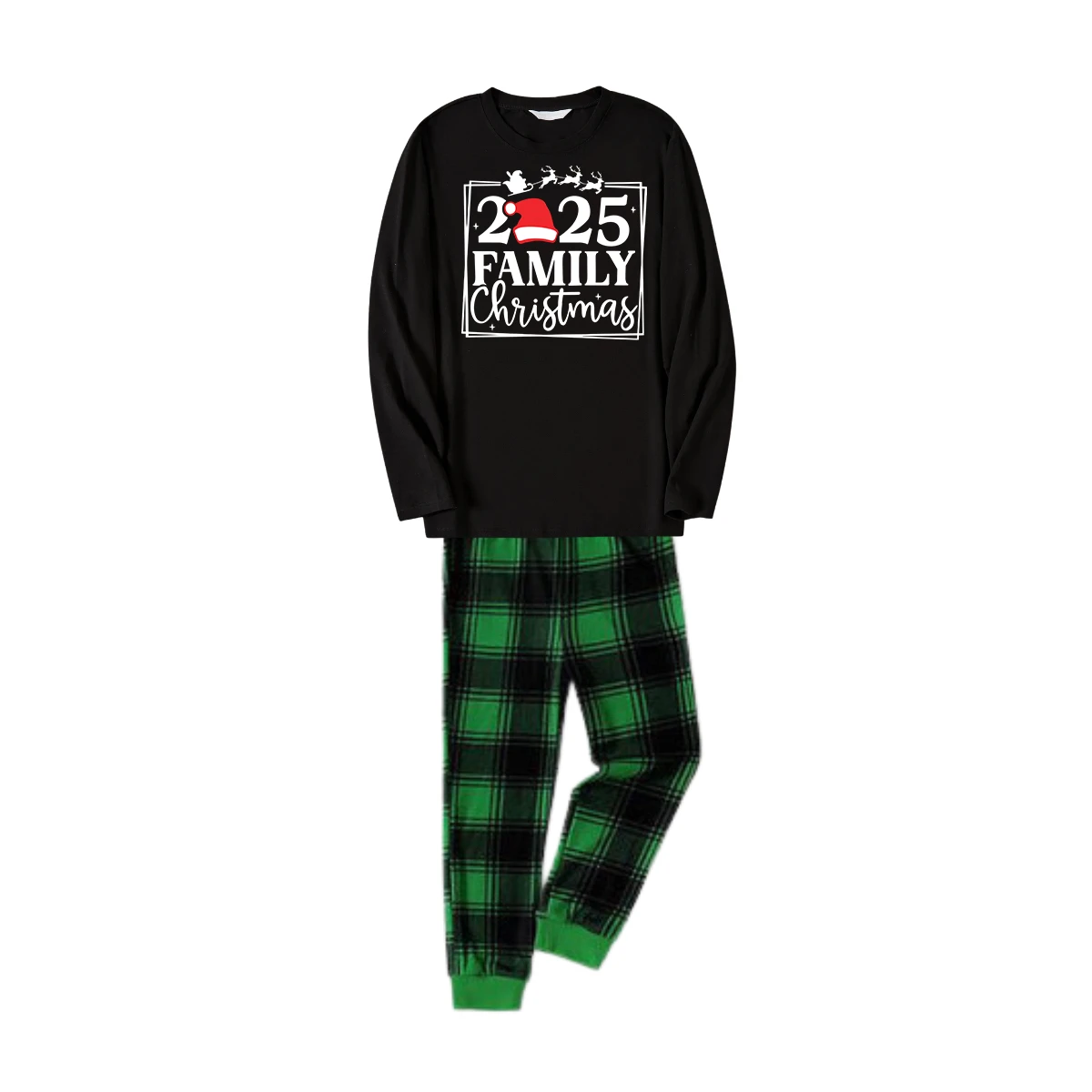 "Family Christmas 2025" Text Printed Black and Green Plaid Family Christmas Matching Pajamas