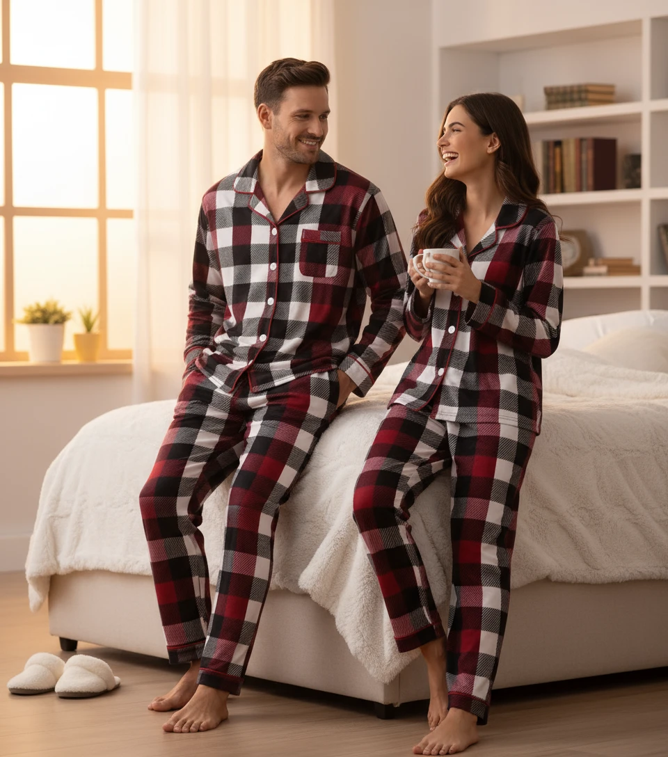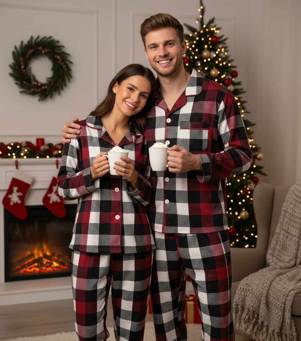 Dress the whole family in matching festive cheer! Our Classic Plaid Christmas Pajamas feature soft. breathable fabric for ultimate comfort.