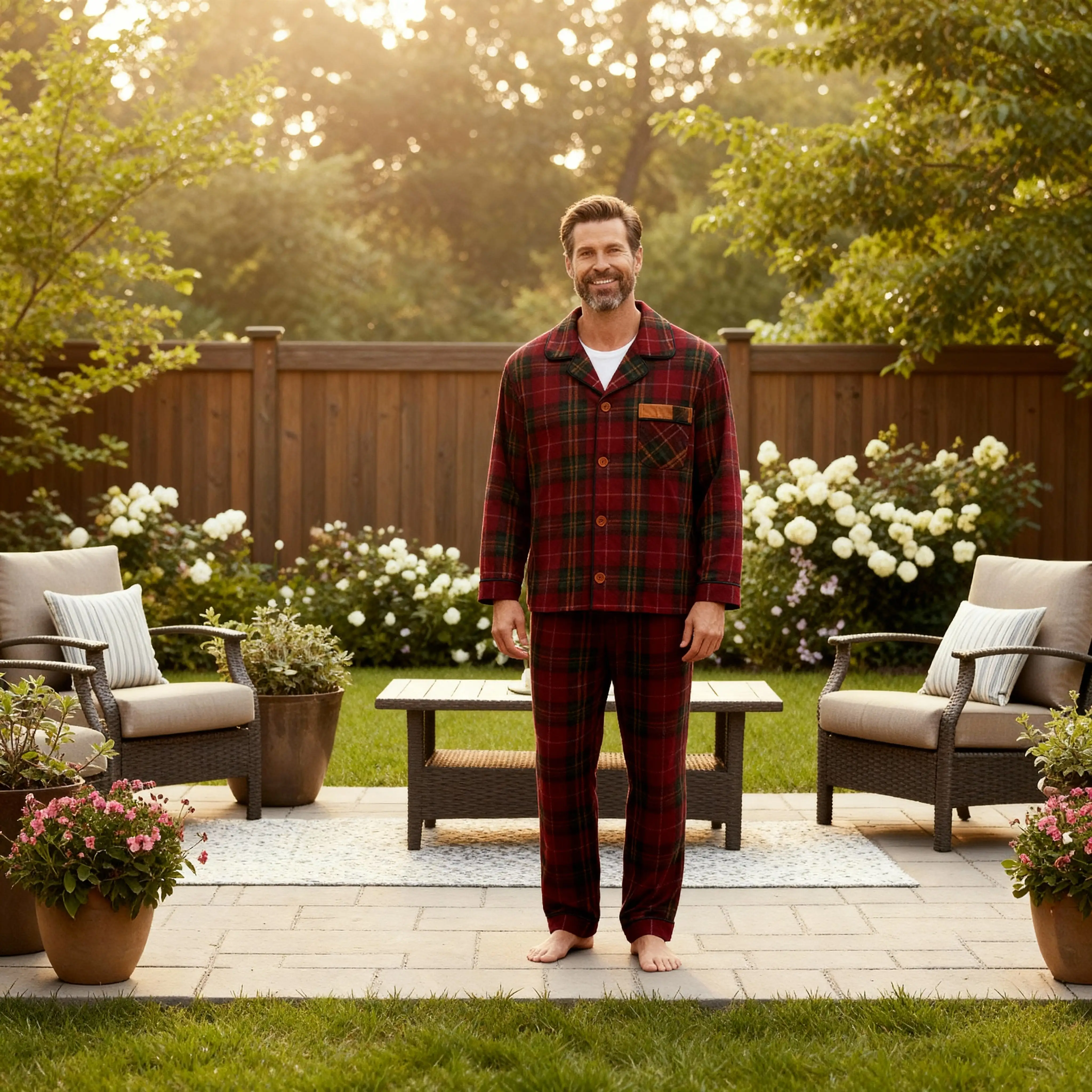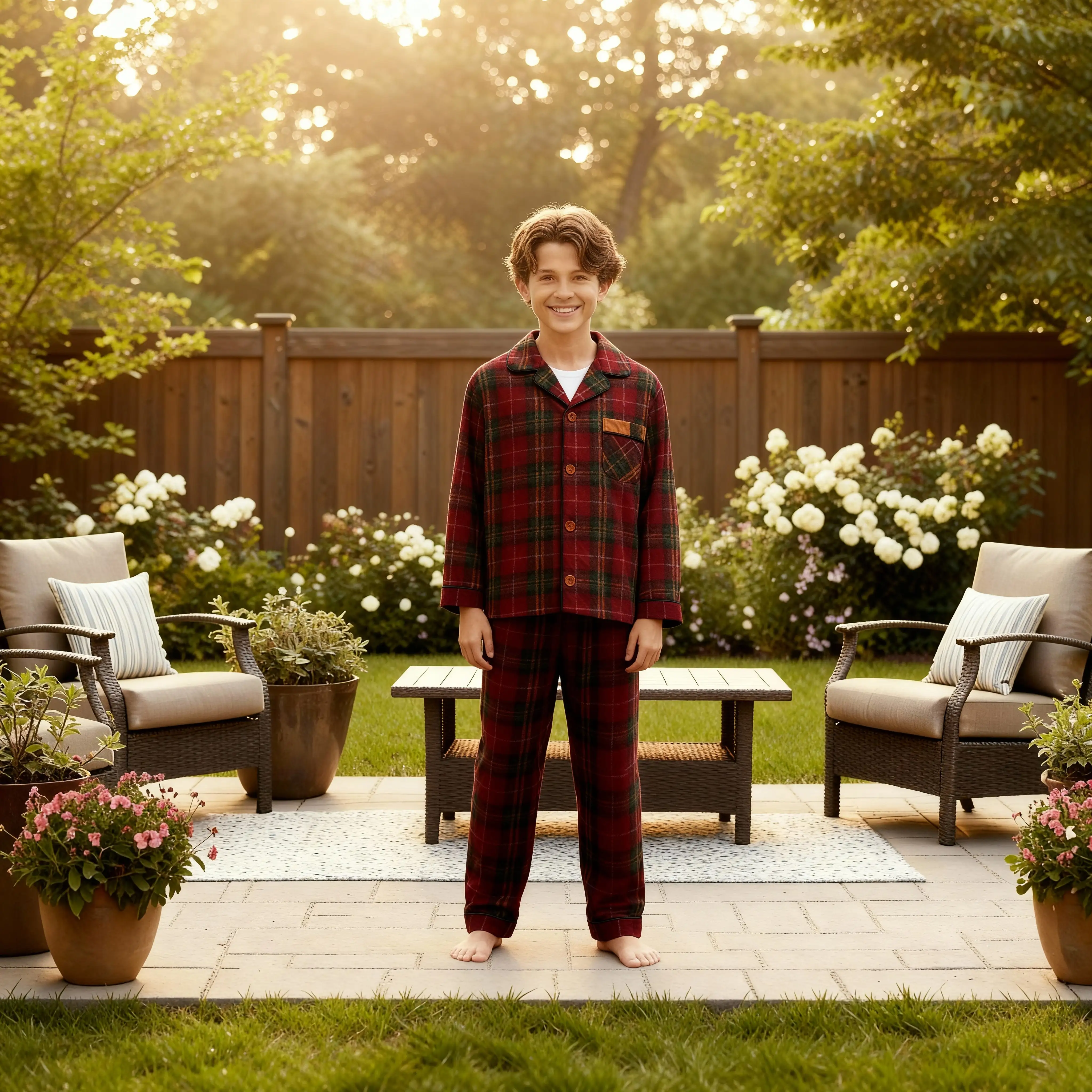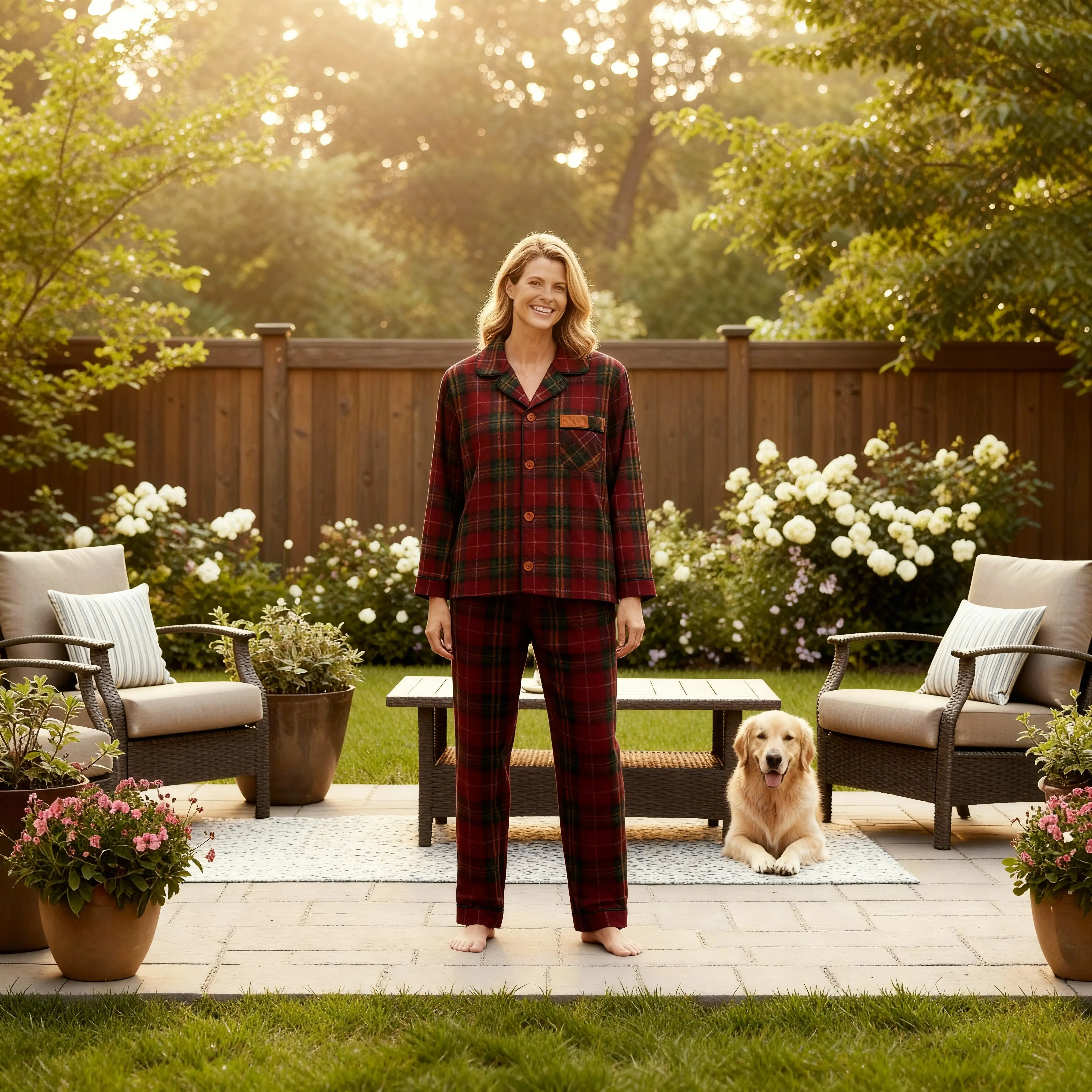 red-button Christmas pajamas-2025 Plaid Button-down Pjs cotton-pjsButton up Pjs jenny