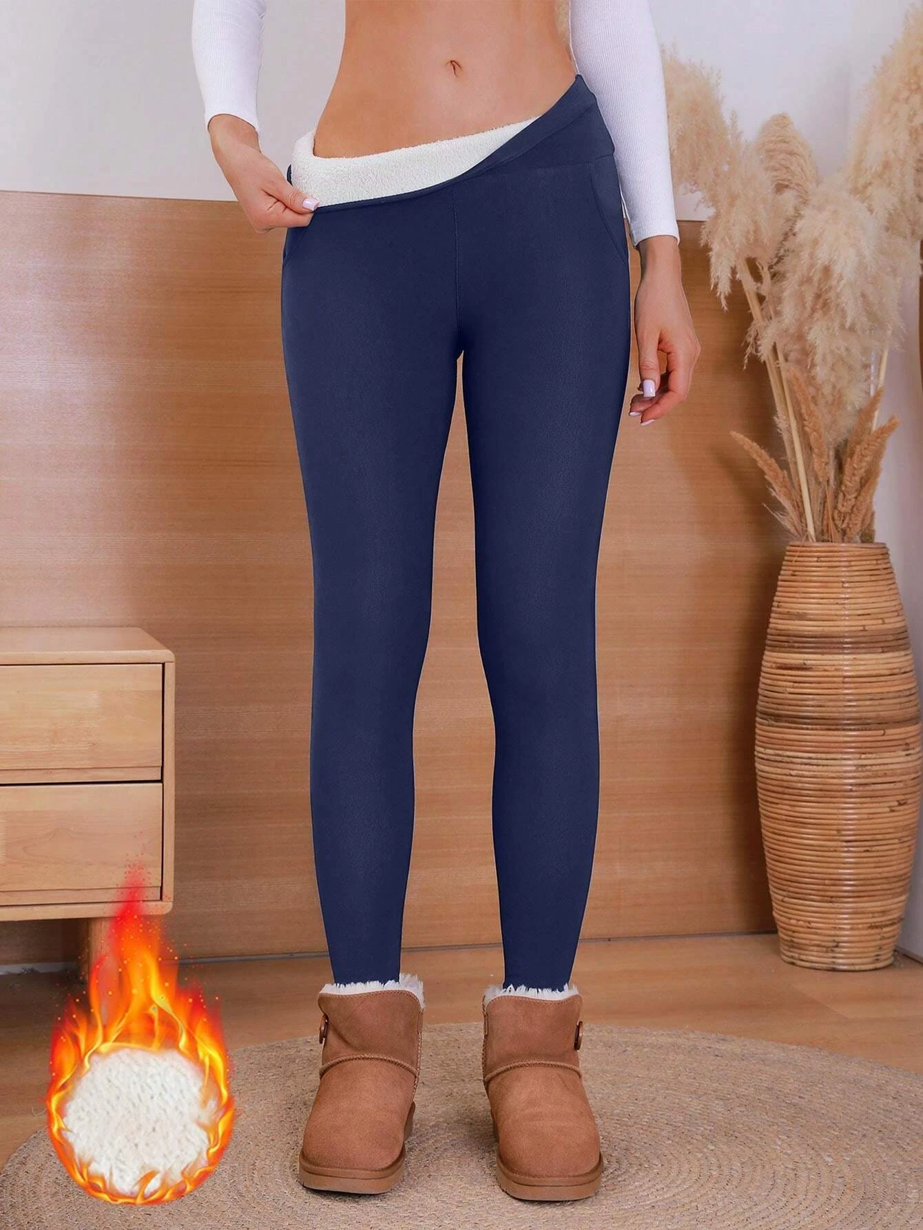Easy to care for—simply machine wash and avoid dry cleaning—these leggings are a must-have addition to your winter wardrobe. Stay stylish and warm with our Women Fleece Lined Thick Pocket Leggings. and confidently face the cold!