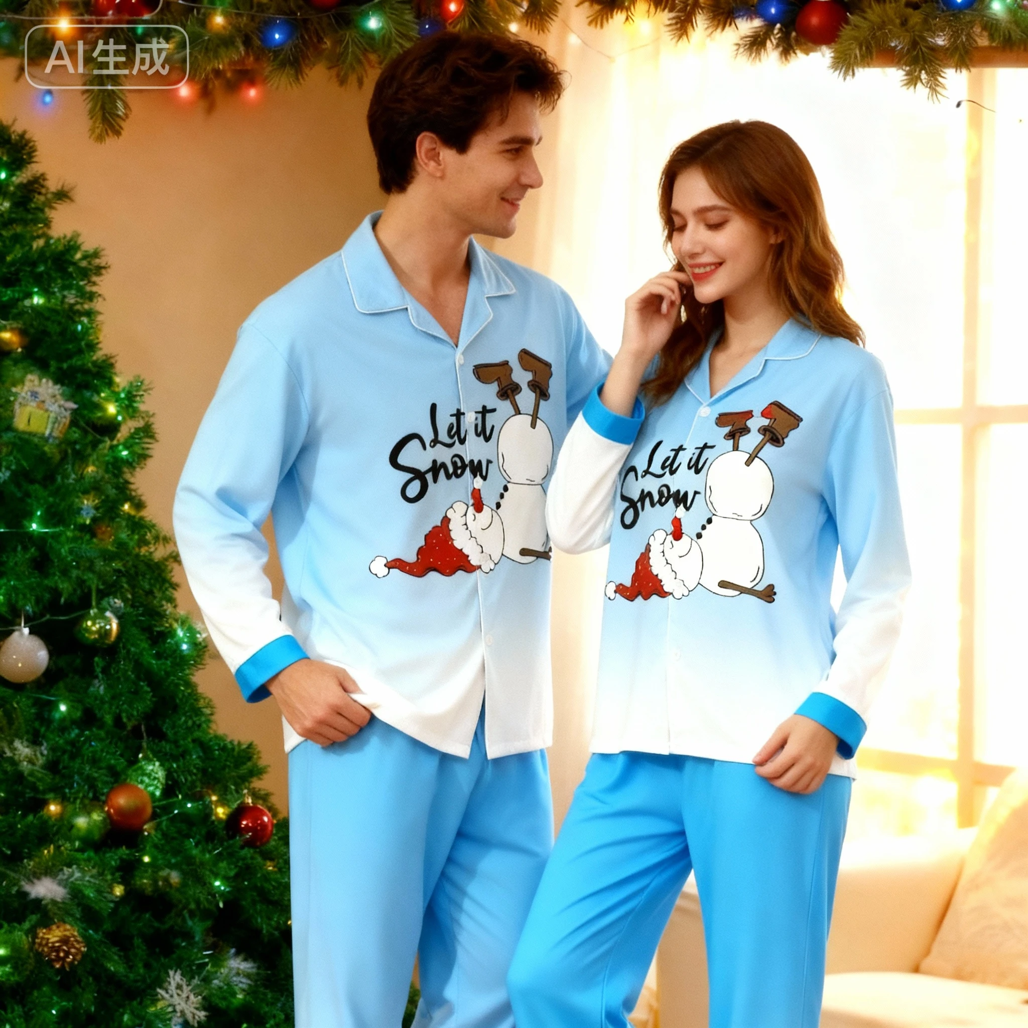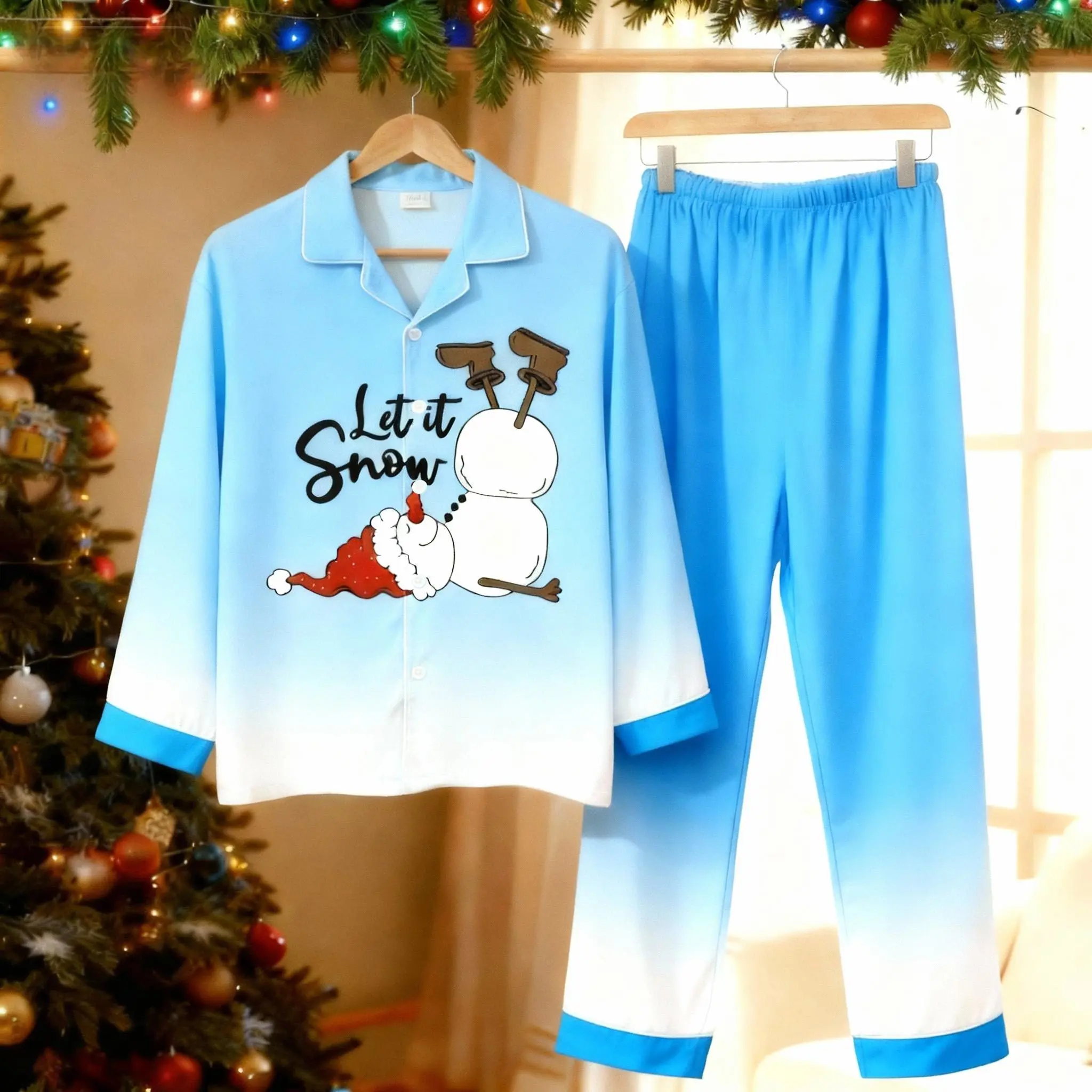 Gradient Color Snowman Button-Up Family Christmas Pajamas Set