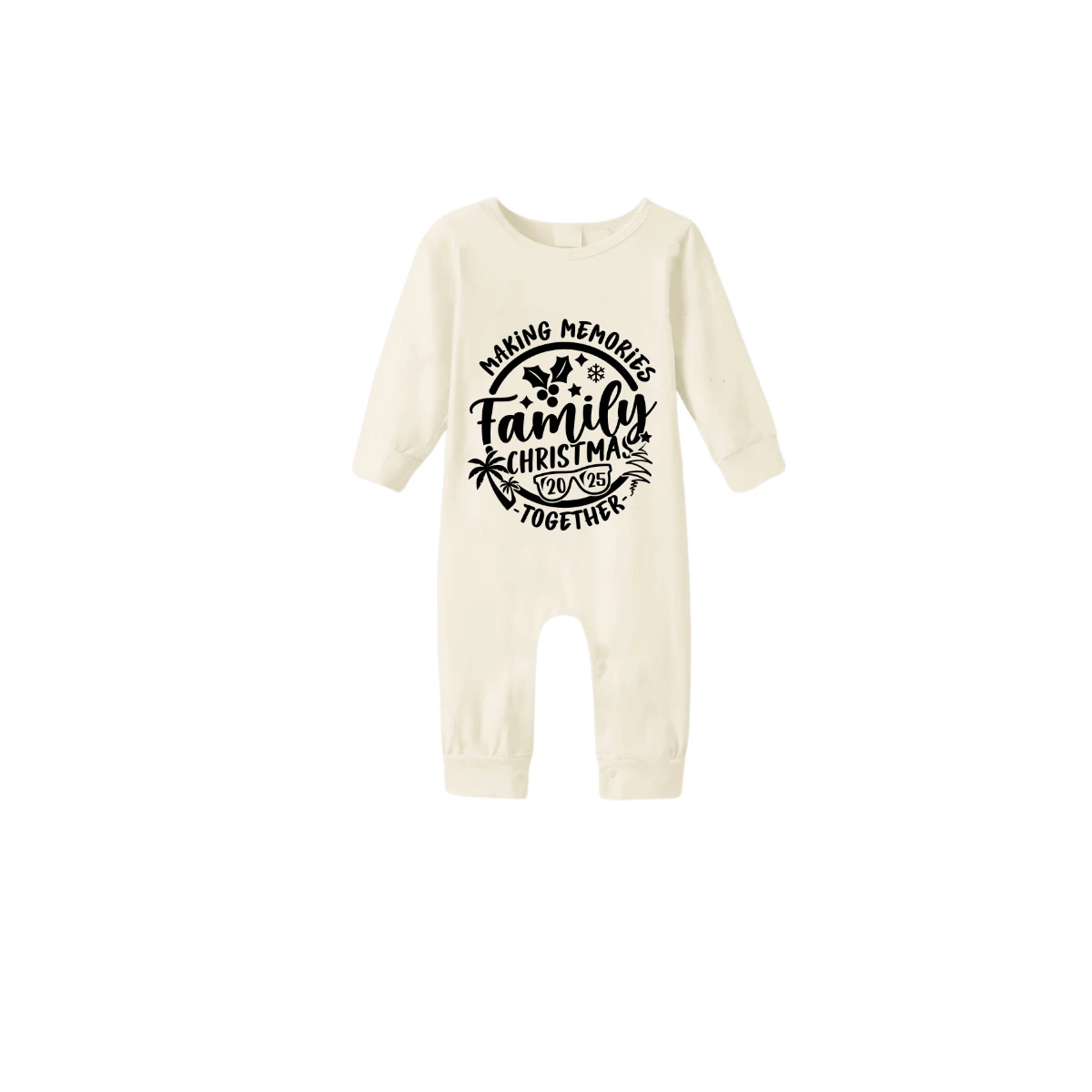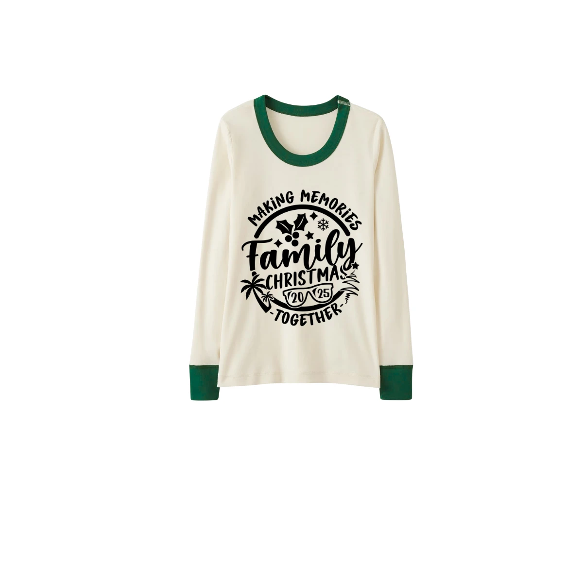 Green Cute Deer Print Christmas Pajamas Set With "Making Memories Together Family Christmas 2025 " Text Print