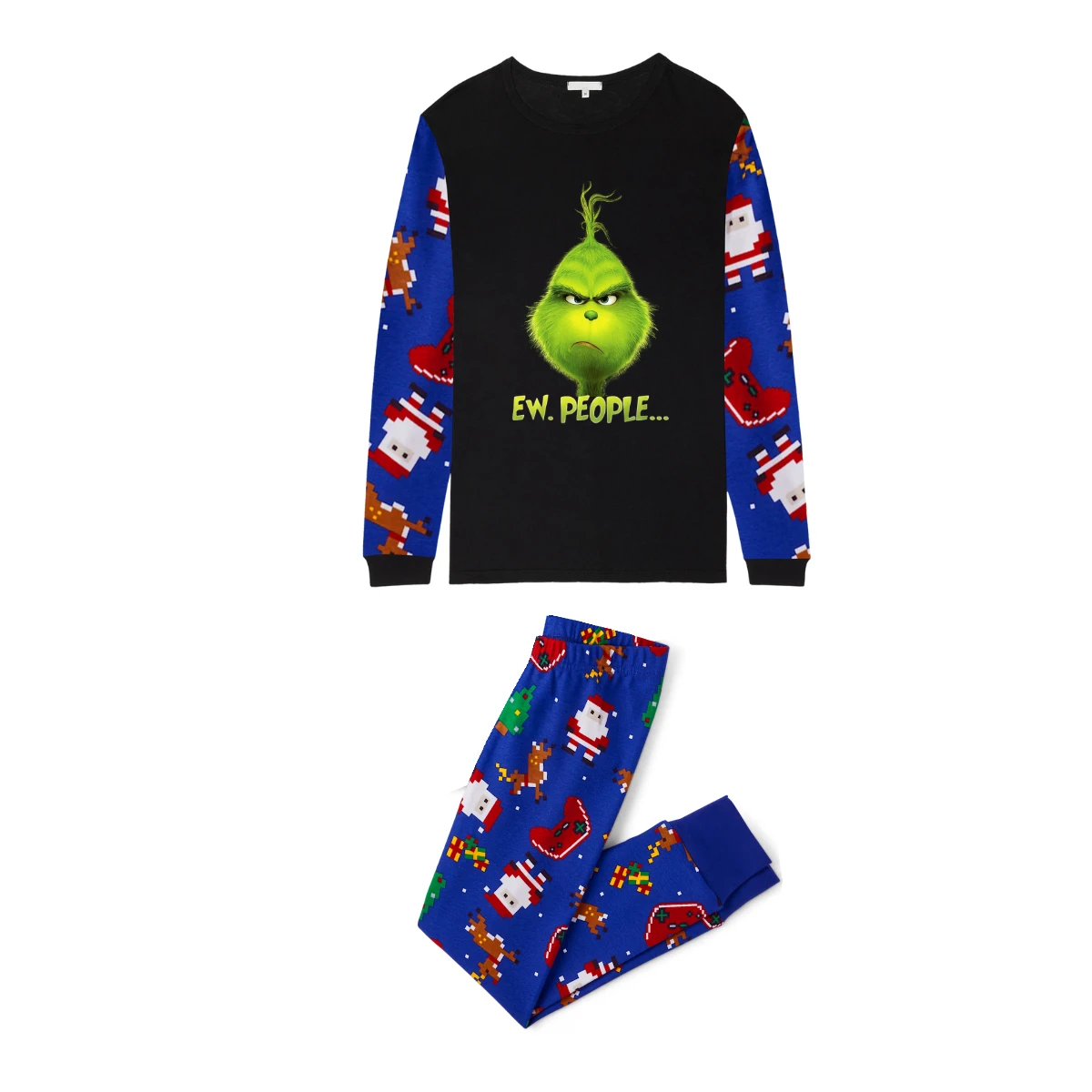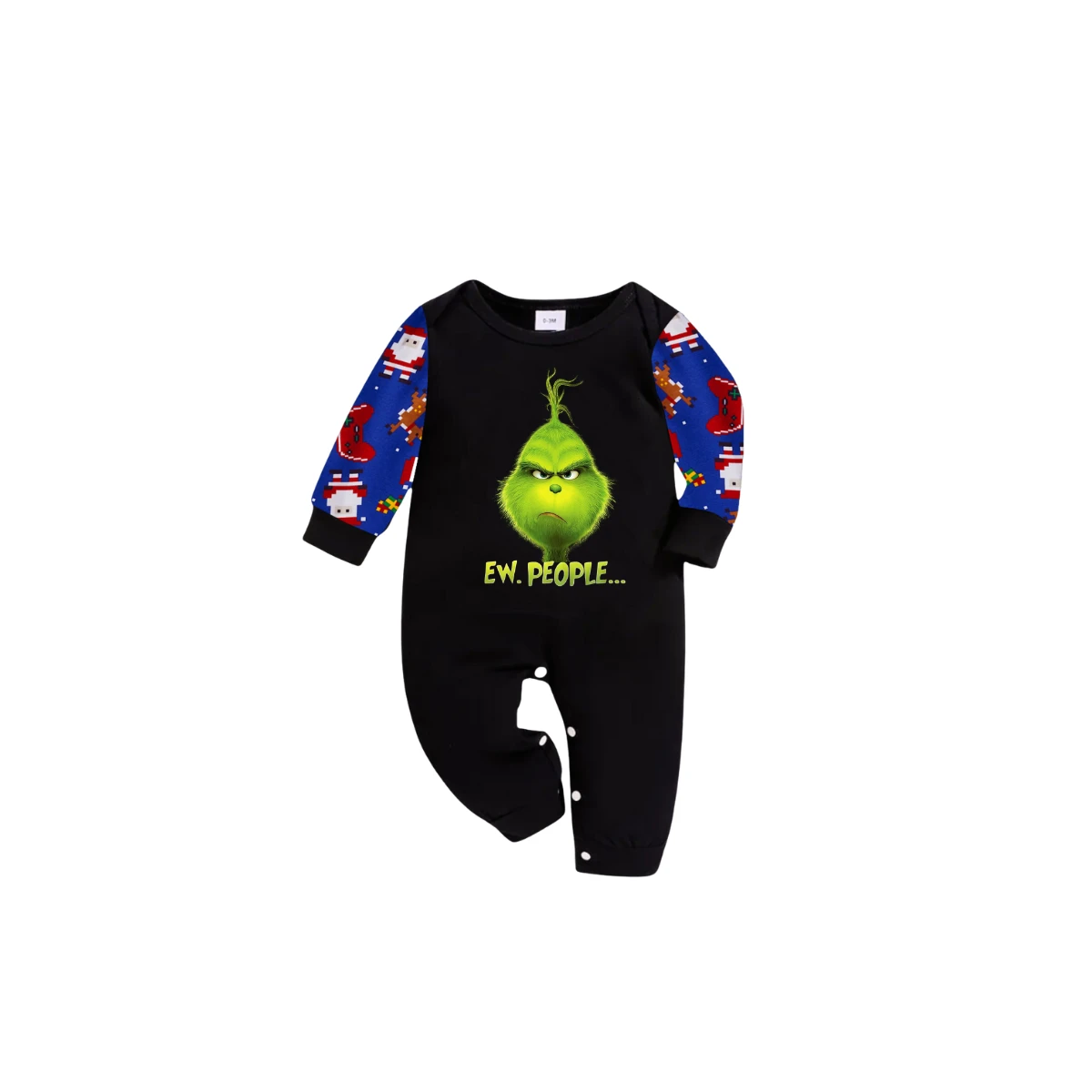 Grinch Ew, People.... Family Christmas Pajamas Blue Santa Print