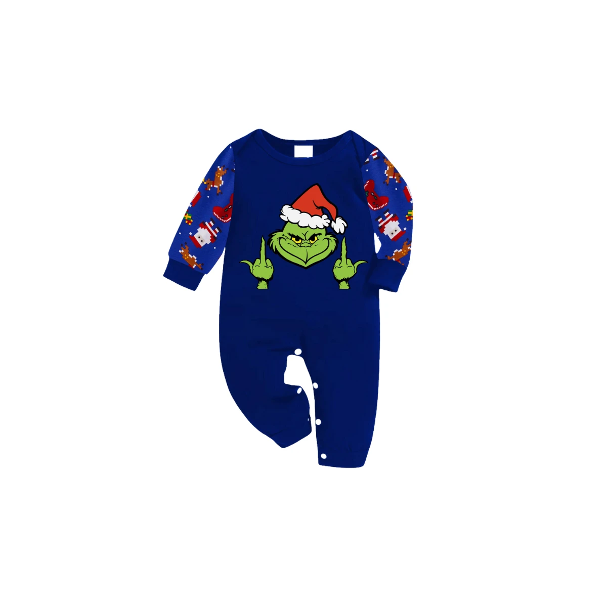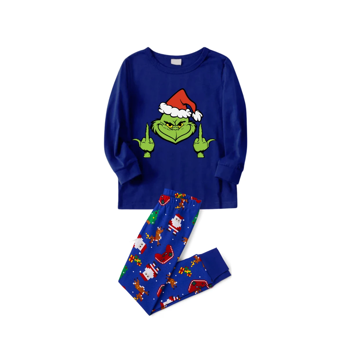 Grinchy Christmas Cartoon Family Pajamas - Blue