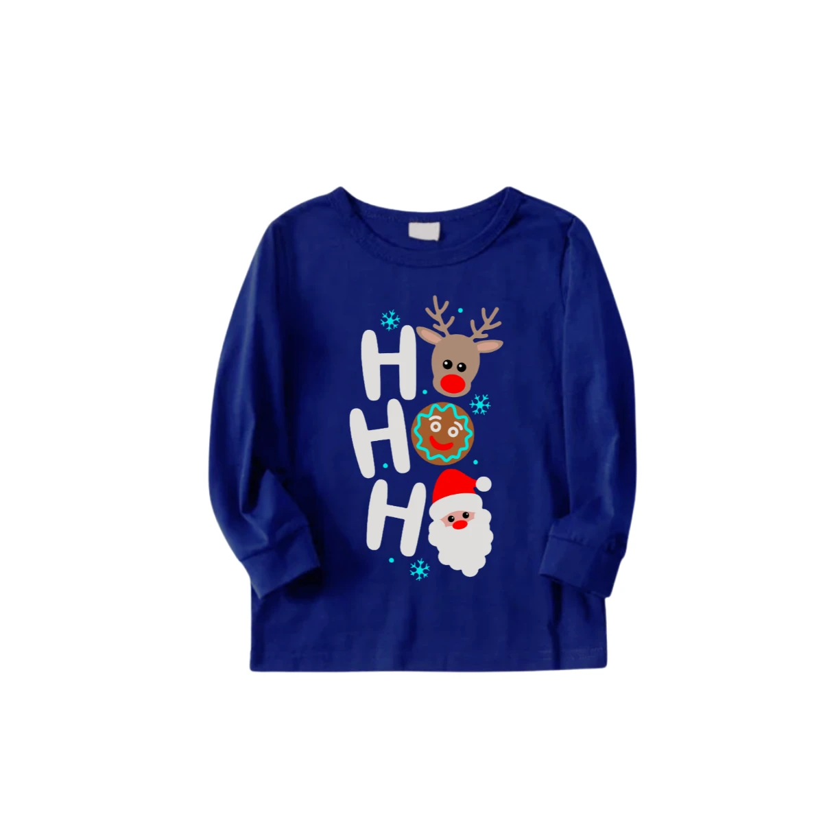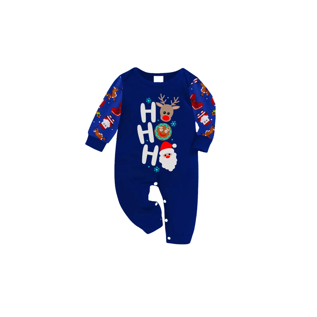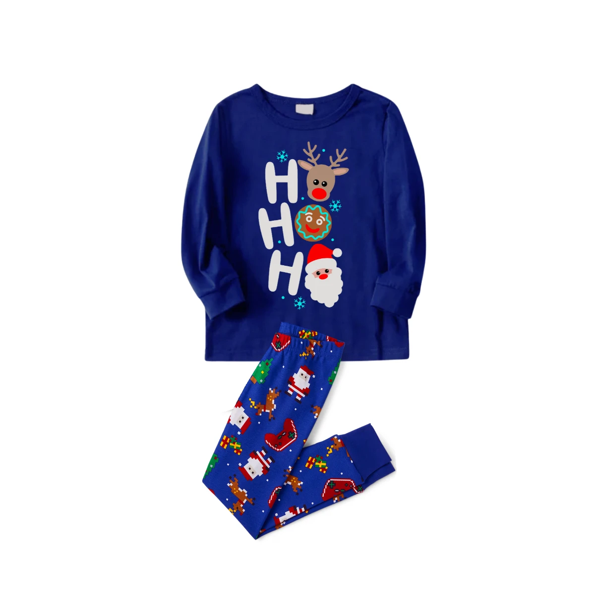 HO HO HO Christmas Pajama Set in Blue with Santa, Reindeer, and Gingerbread