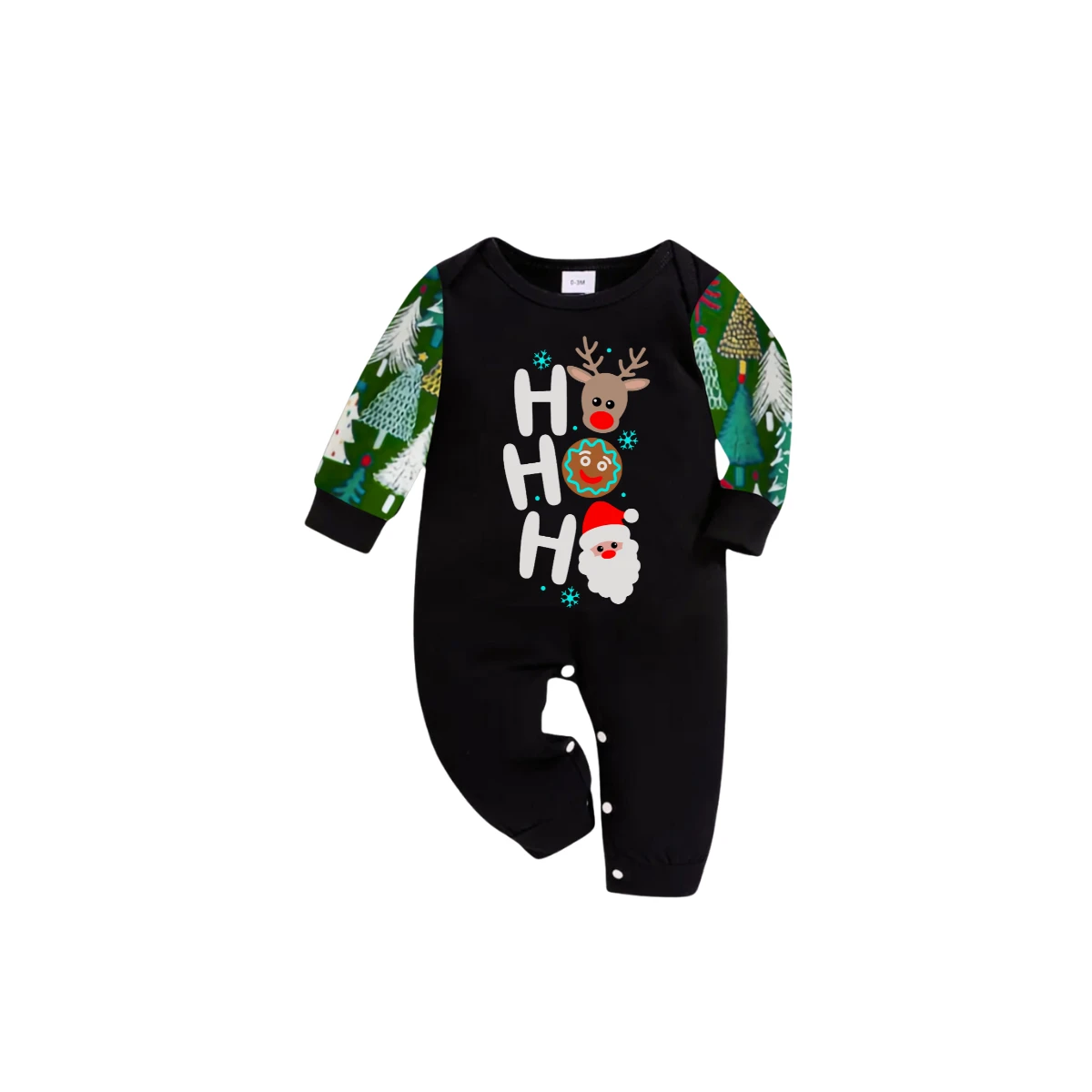 HO HO HO Christmas Pajama Set with Santa, Reindeer, and Christmas Trees