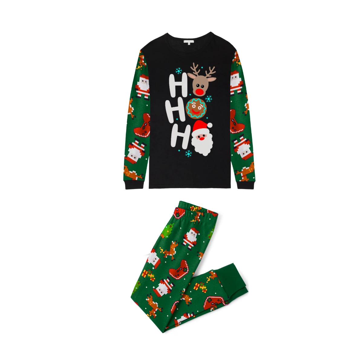 HO HO HO Christmas Pajama Set with Santa, Reindeer, and Gingerbread in Green