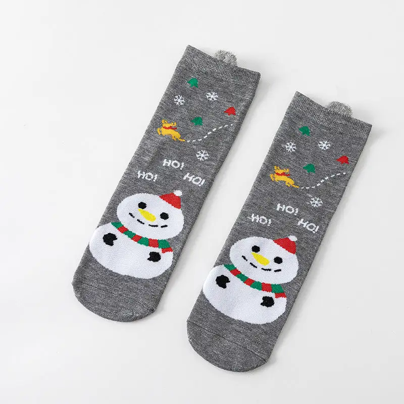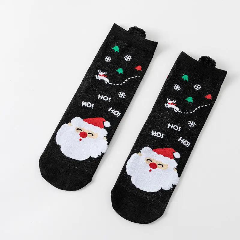 HO HO HO Christmas Striped Elk Tree Gift Santa Claus Snowman Cute Ears Cotton Tube Socks 5Pairs