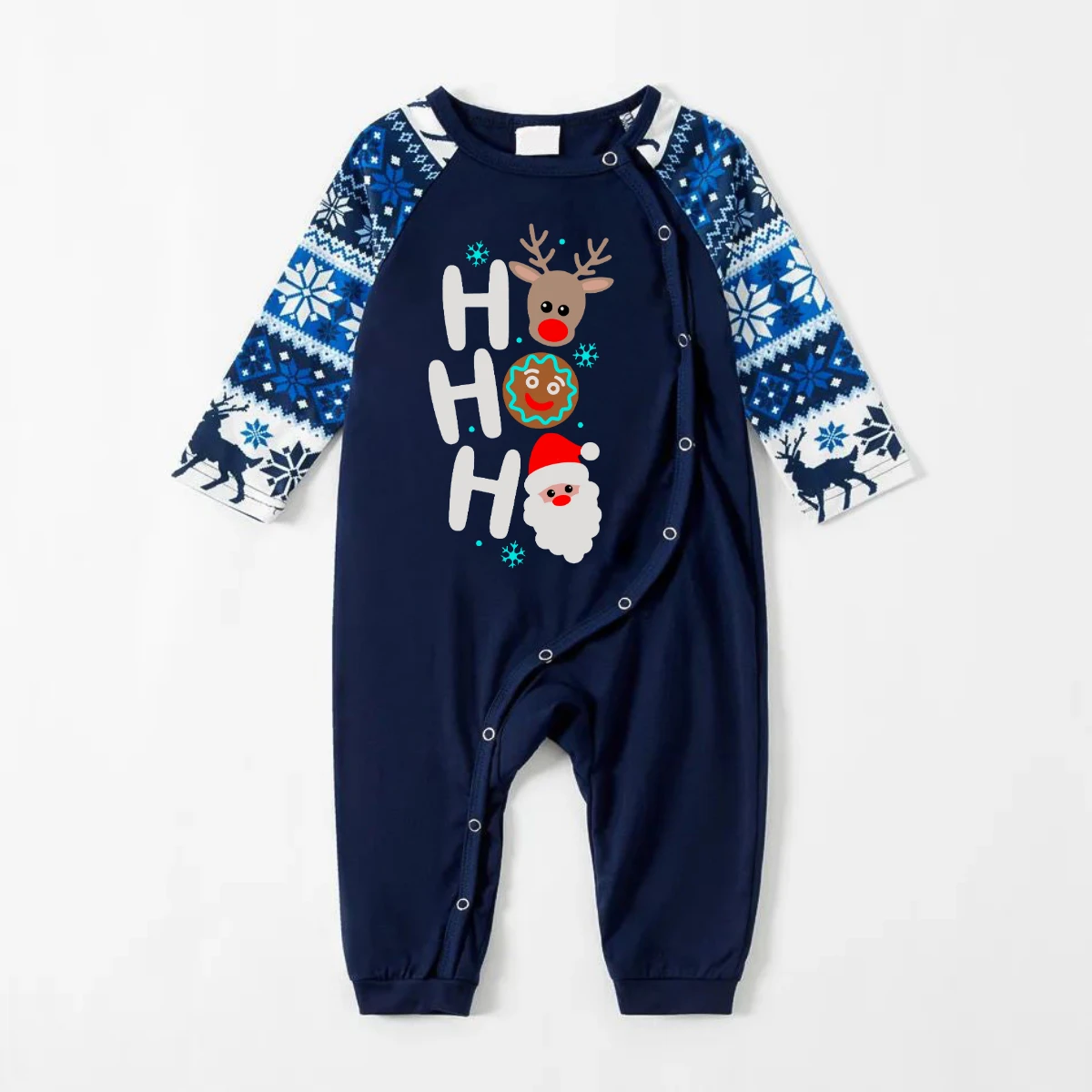 HO HO HO Text and Santa Claus Print Blue Family Christmas Matching Pajamas