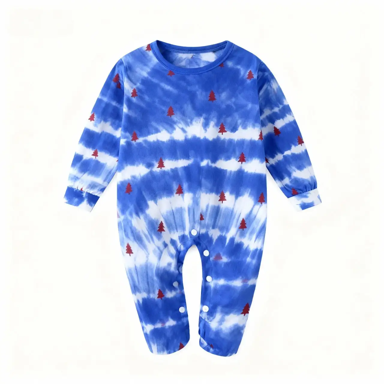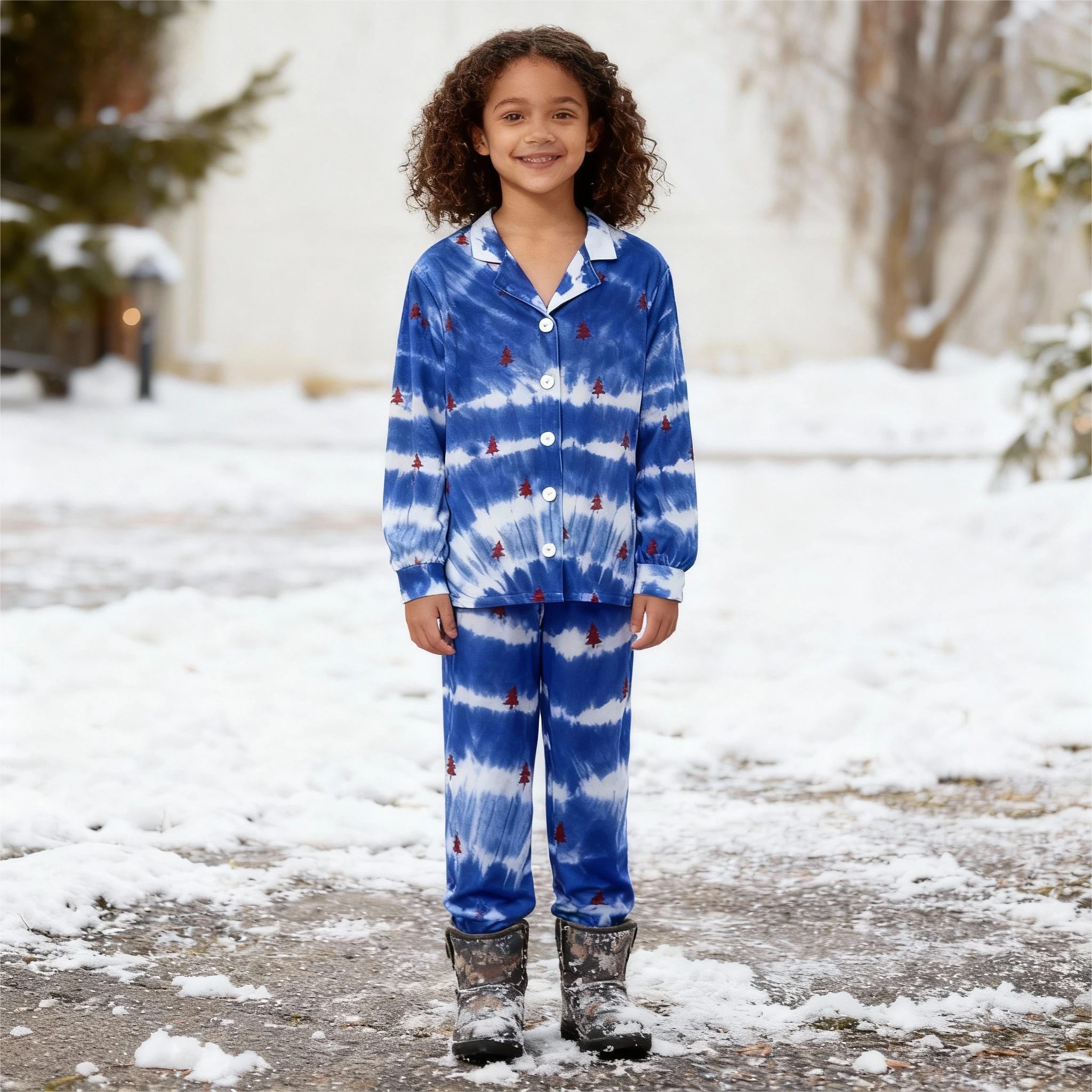 Holiday Family Button-Up Blue & Tree Tie-dyed Christmas Pajamas Set