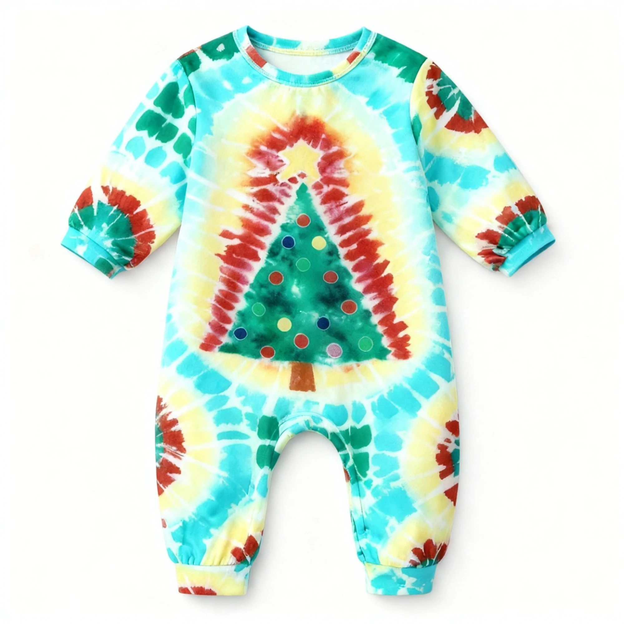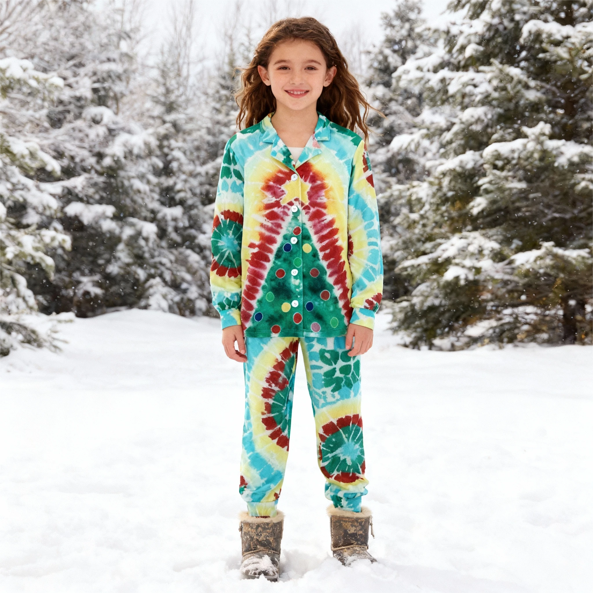Holiday Family Button-Up Green & Yellow Tie-dyed Christmas Pajamas Set
