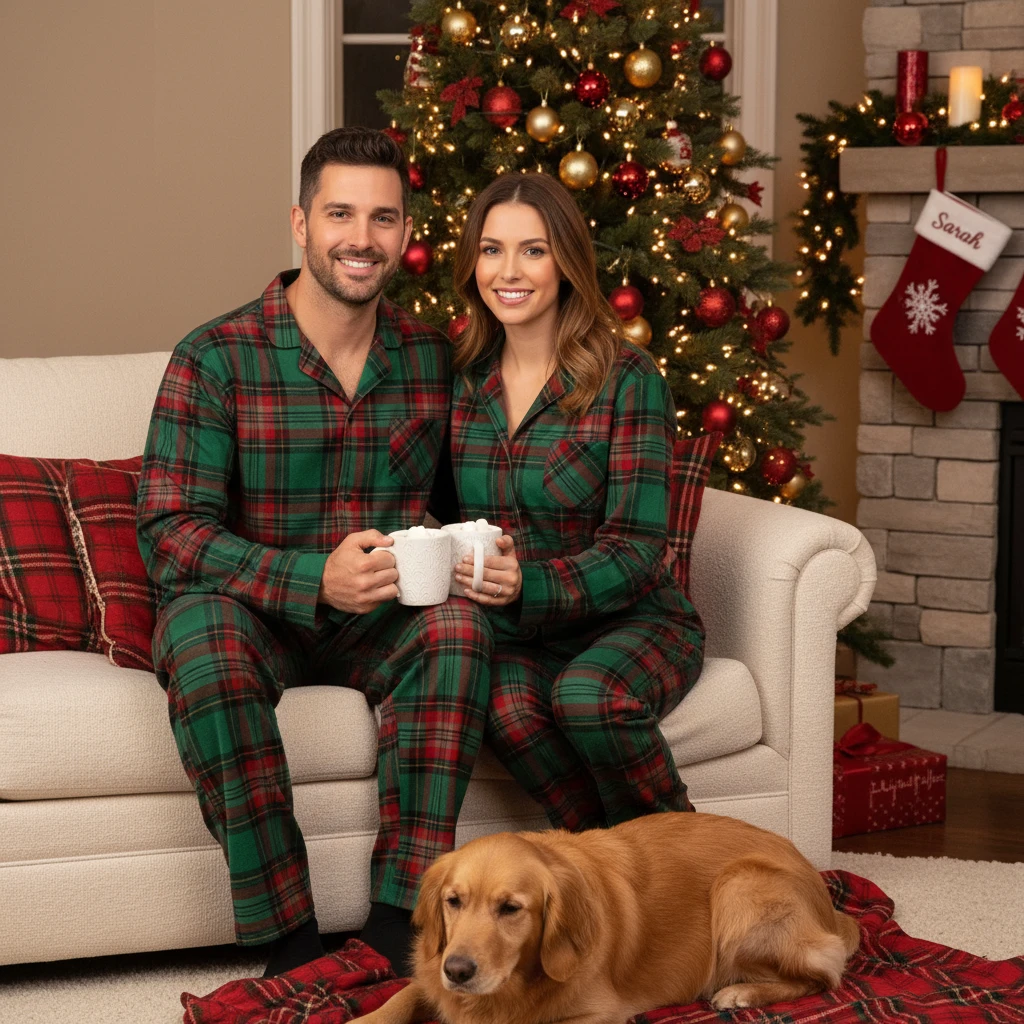 Dress the whole family in matching festive cheer! Our Classic Plaid Christmas Pajamas feature soft. breathable fabric for ultimate comfort.