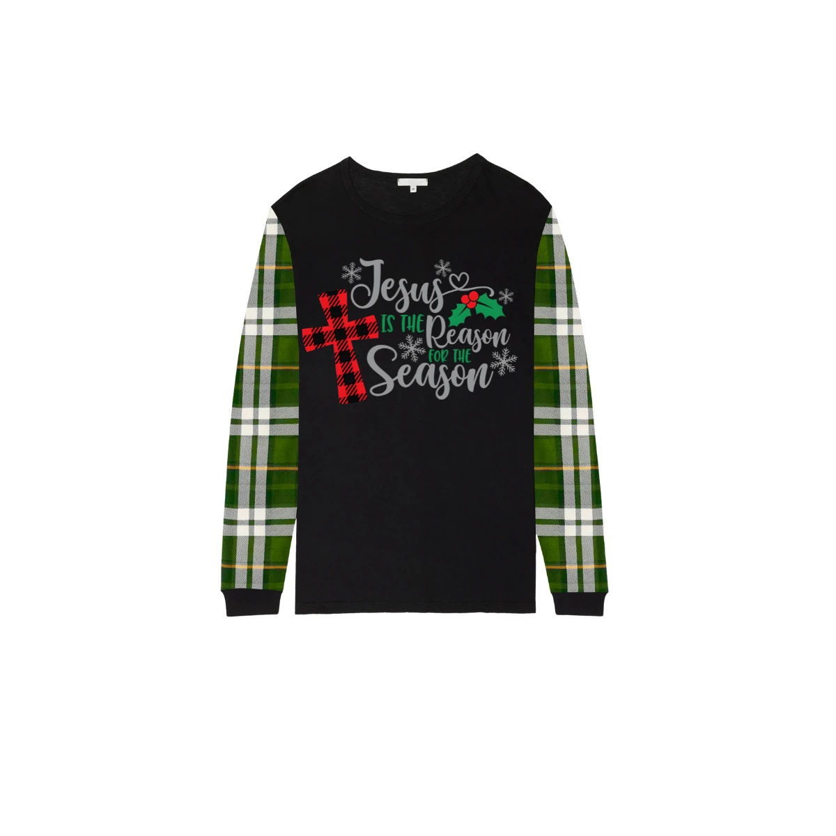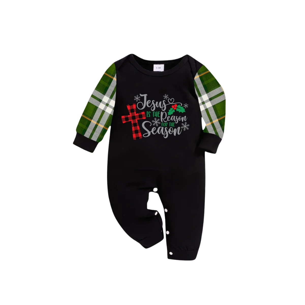 Jesus Is the Reason Family Christmas Pajamas Set Matching Black & Green Plaid