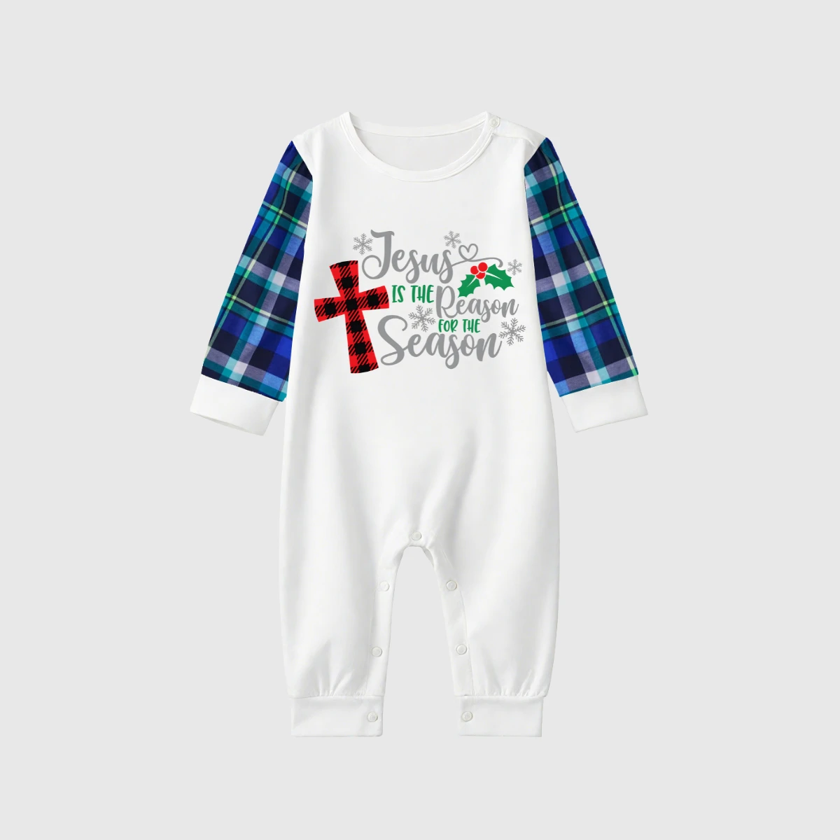Jesus Reason Christmas Pajamas - Navy & Green Plaid