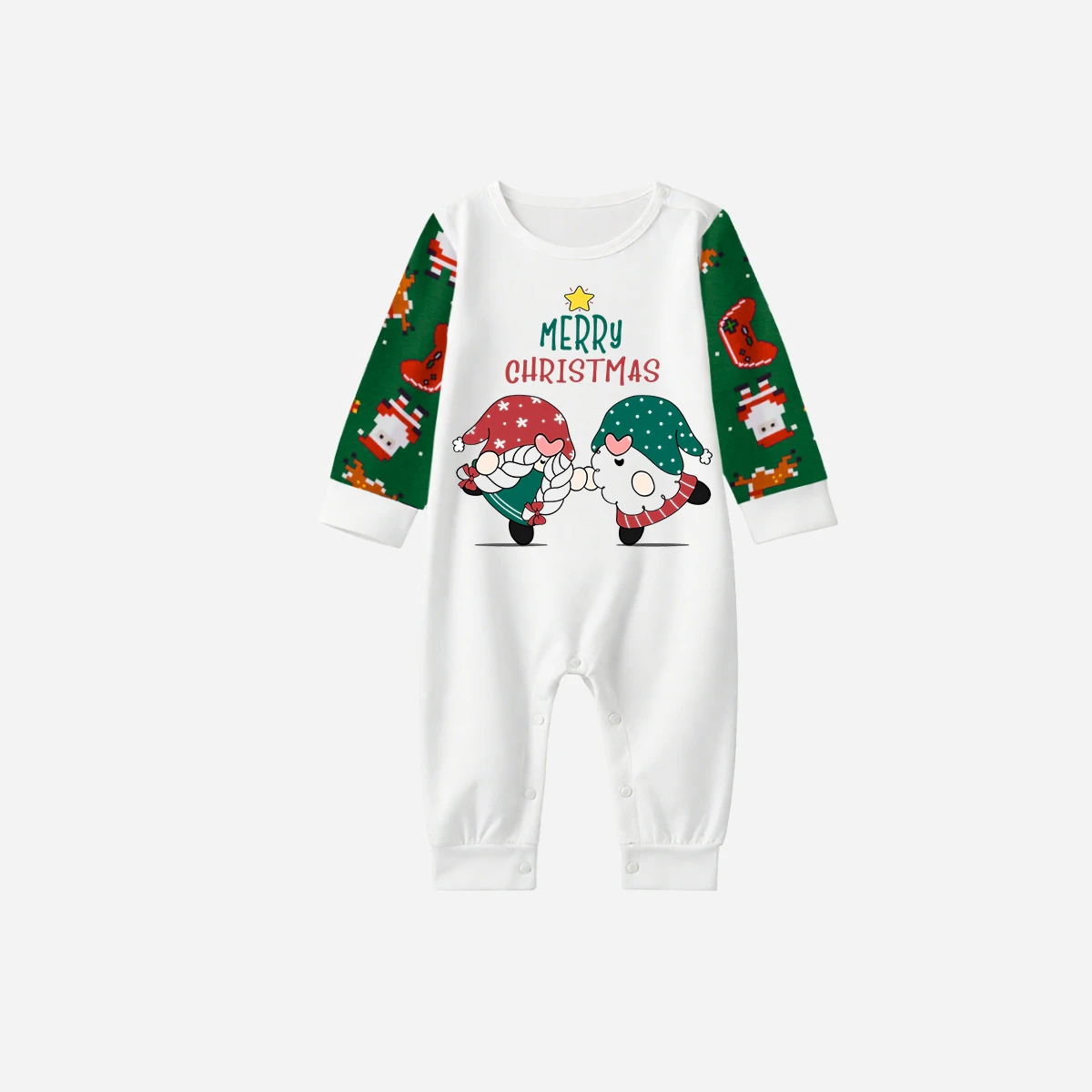 Joyful Green Raglan Top Christmas Pajamas Set With Gnome and Merry Christmas Text Print