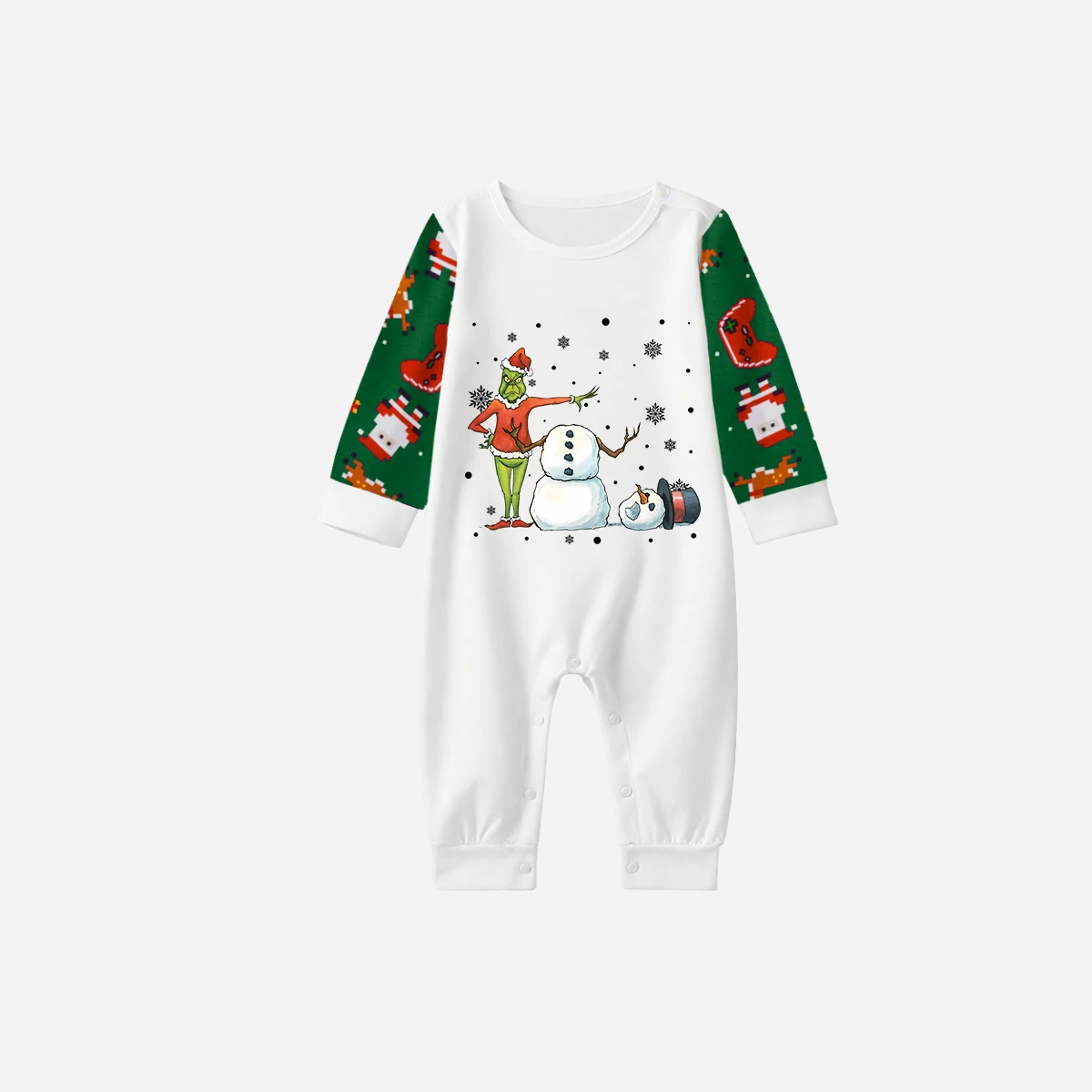 Joyful Green Raglan Top Christmas Pajamas Set With Snowman and Christmas Grinch Print