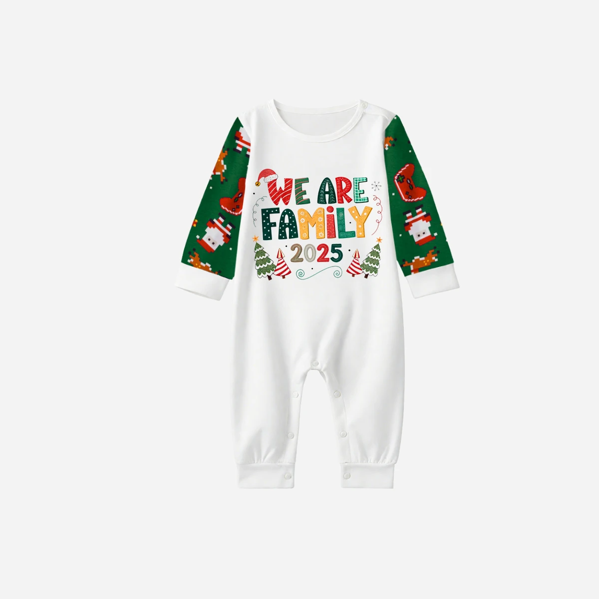 Joyful Green Raglan Top Christmas Pajamas Set With "We are Family" Colorful Text Print